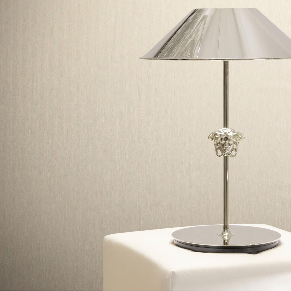 papier peint Versace au design uni et élégant offre un look épuré et haut de gamme avec un caractère dimensionnel. La surface présente une couche ferme de vinyle combinée à un embossage, créant une texture subtile que l’on peut voir et ressentir sous un éclairage quotidien. Un effet légèrement brillant rehausse l’apparence raffinée, faisant ressortir la teinte métallique pour une profondeur visuelle plus douce et plus premium que les finitions mates. Ce style de papier peint design fonctionne particulièrement bien lorsque vous souhaitez un fond élevé sans motifs chargés.