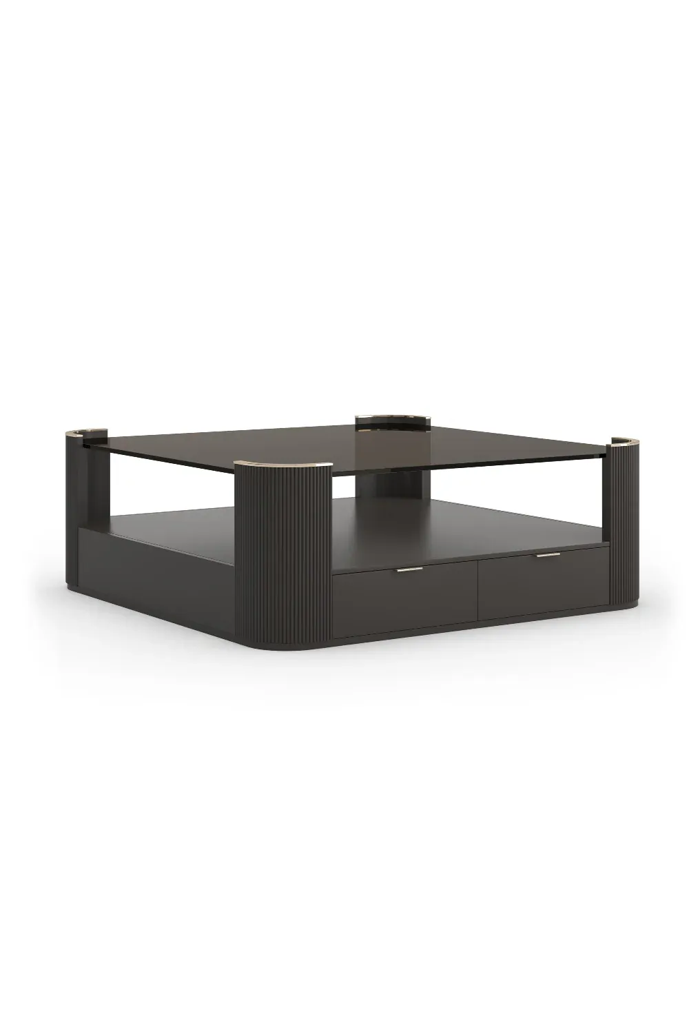 Dark Brown  Glass Top Square Coffee Table | Luxury Coffee Tables Collections