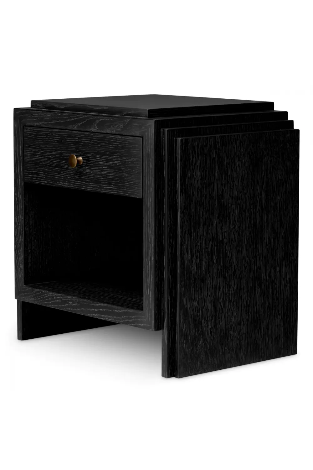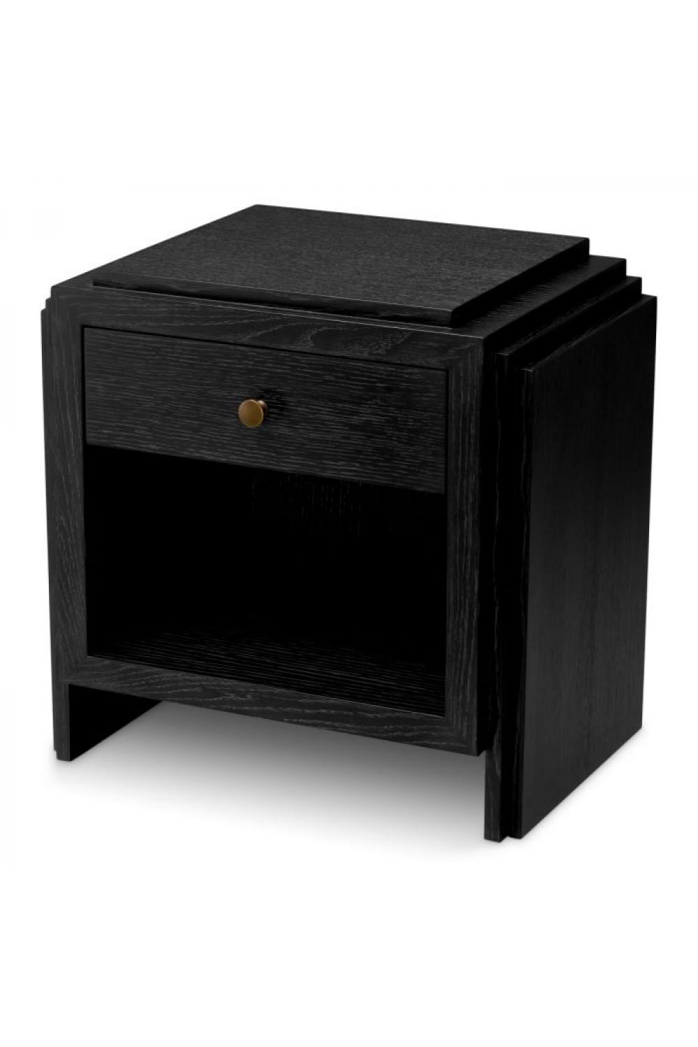 The Grand Auremont Nightstand embodies the spirit of elevated living — a creation where power meets poise. Hand-finished in charcoal-toned oak veneer, its deep texture reflects the natural depth of fine wood, while the subtle sheen of brushed bronze detailing introduces a refined contrast that speaks of artisanal mastery.
