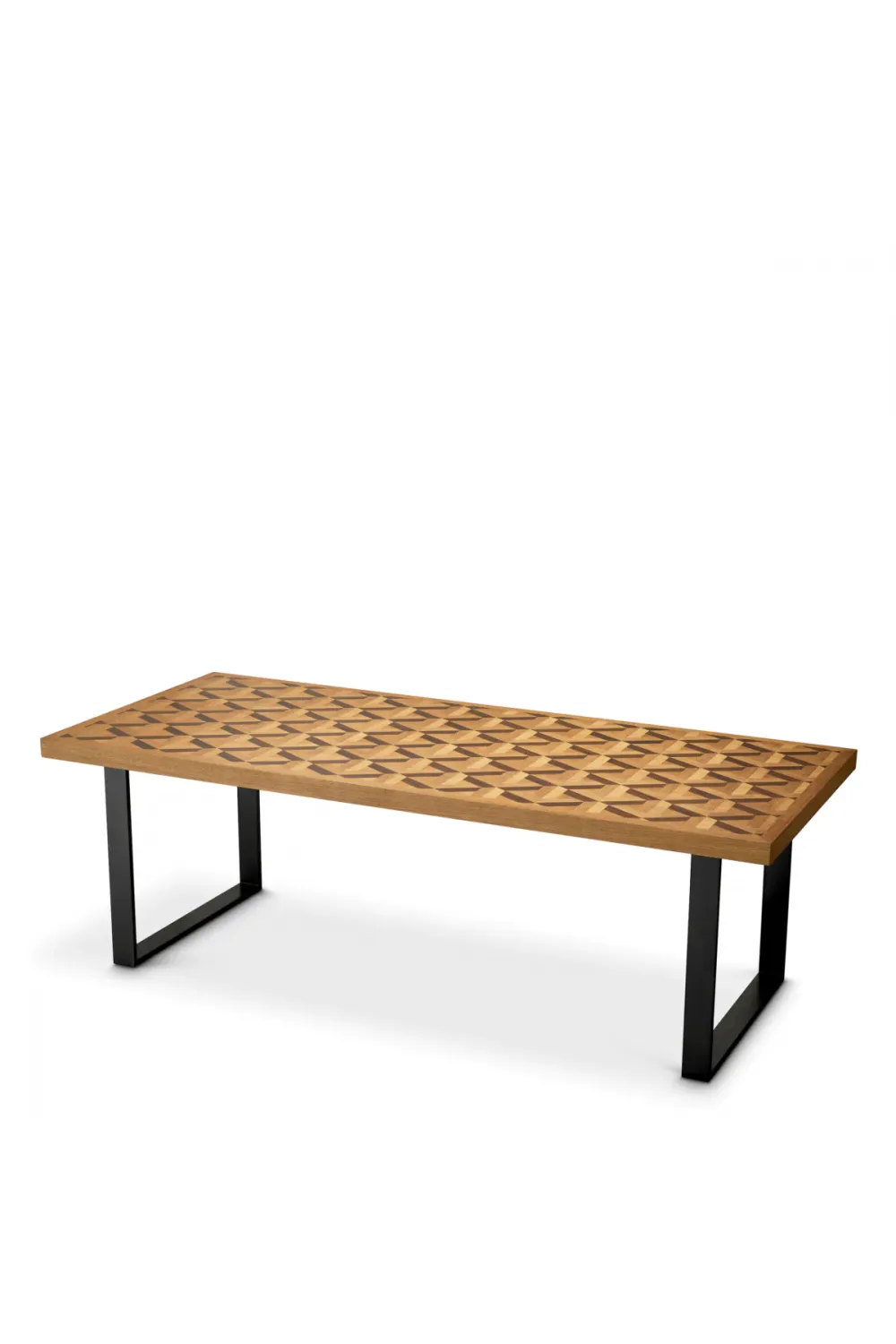 Every detail reflects masterful craftsmanship. Laser-cut veneer strips are carefully assembled by hand, pressed, bonded, and seamlessly applied to form an innovative inlay pattern, making each table unique. This meticulous process ensures that the Grand Bronze Finish Dining Table is not only durable but also an artisanal work of art, elevating your dining room with unparalleled style and refinement.