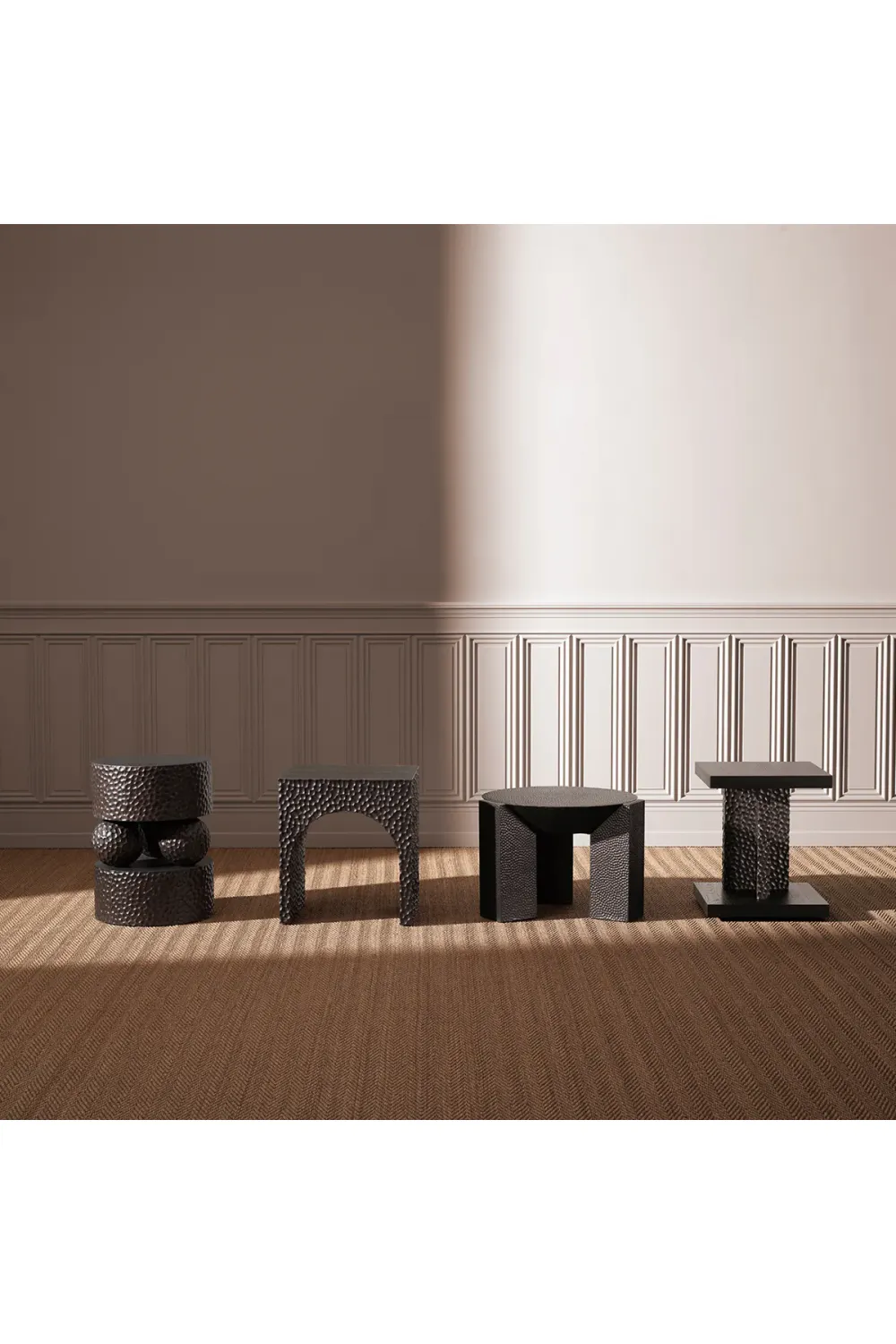 The Grand Royale Black Side Table embodies the essence of luxury living, combining refined craftsmanship with a bold contemporary edge. Exquisitely finished in ebony oak veneer, it features deep, dramatic tones and a textured surface that add richness, depth, and visual intrigue to any interior. The sleek silhouette paired with subtle artisanal detailing creates an elegant yet striking presence, making this side table more than just functional—it’s a statement of sophistication. Designed to complement both modern and classic décor, it works beautifully alongside sofas, armchairs, or bedsides, serving as a versatile accent in any premium living space. Its durable construction ensures long-lasting quality, while its sculptural design adds a layer of artistry to refined interiors. Perfect for luxury living rooms, boutique lounges, high-end offices, or master suites, the Grand Royale Black Side Table offers a seamless blend of elegance, durability, and timeless appeal for those who desire furniture with lasting impact.