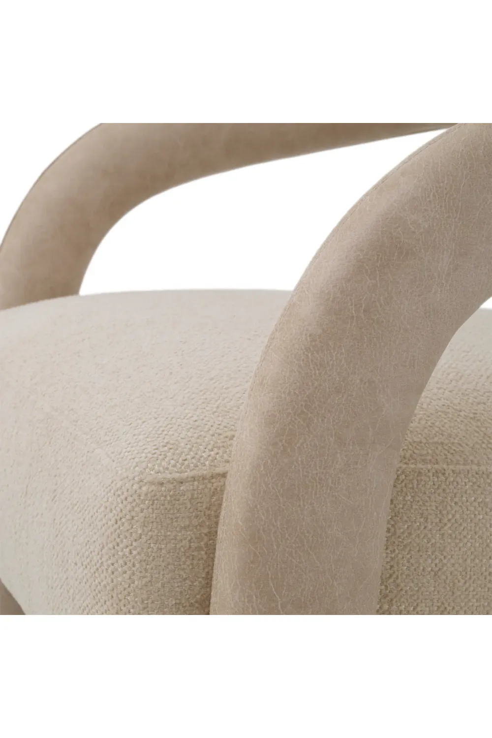 Handcrafted luxury chair in beige faux leather and ecru fabric
