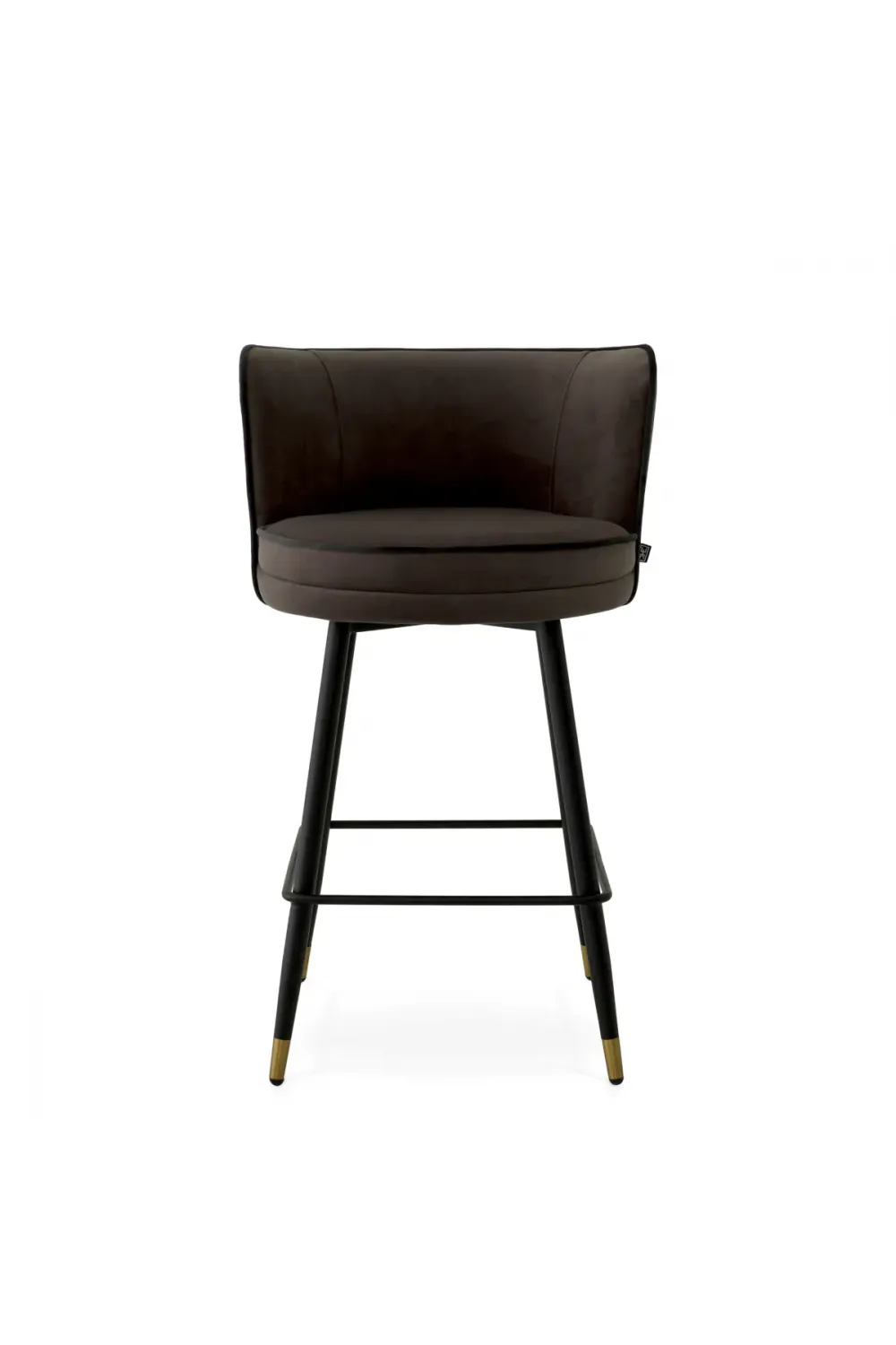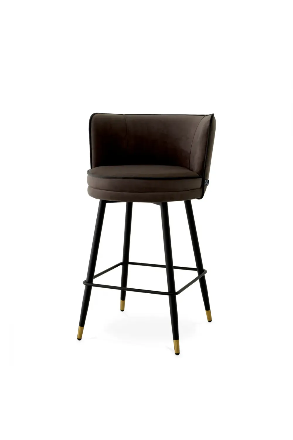 Grenada Counter Stool – Luxury Greige Velvet Swivel Stool with Brass & Black Base