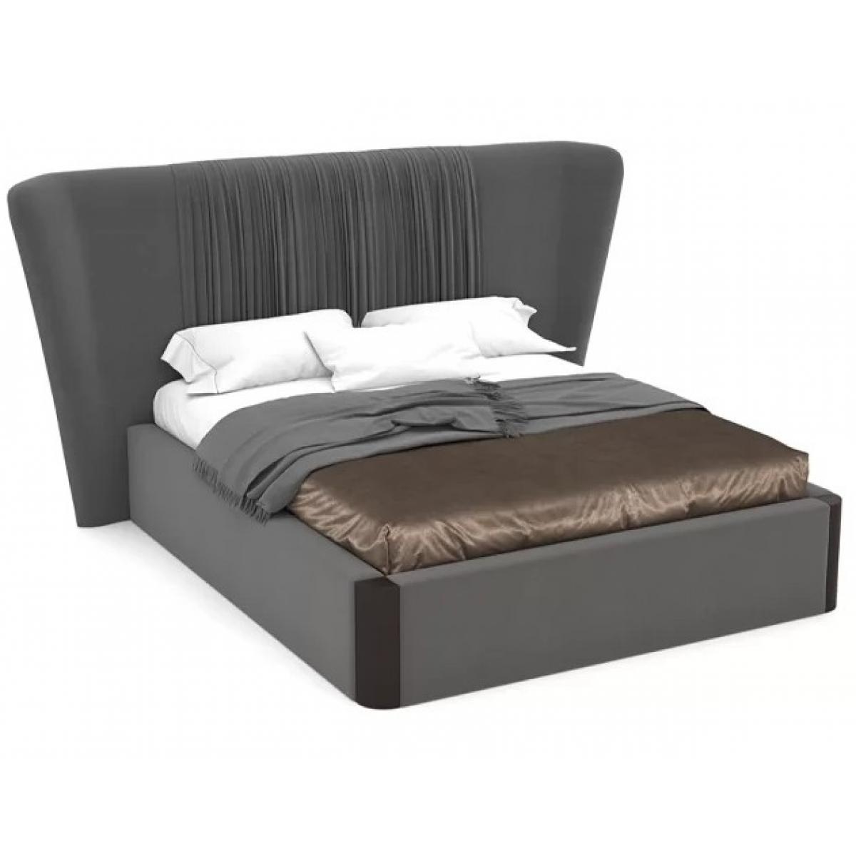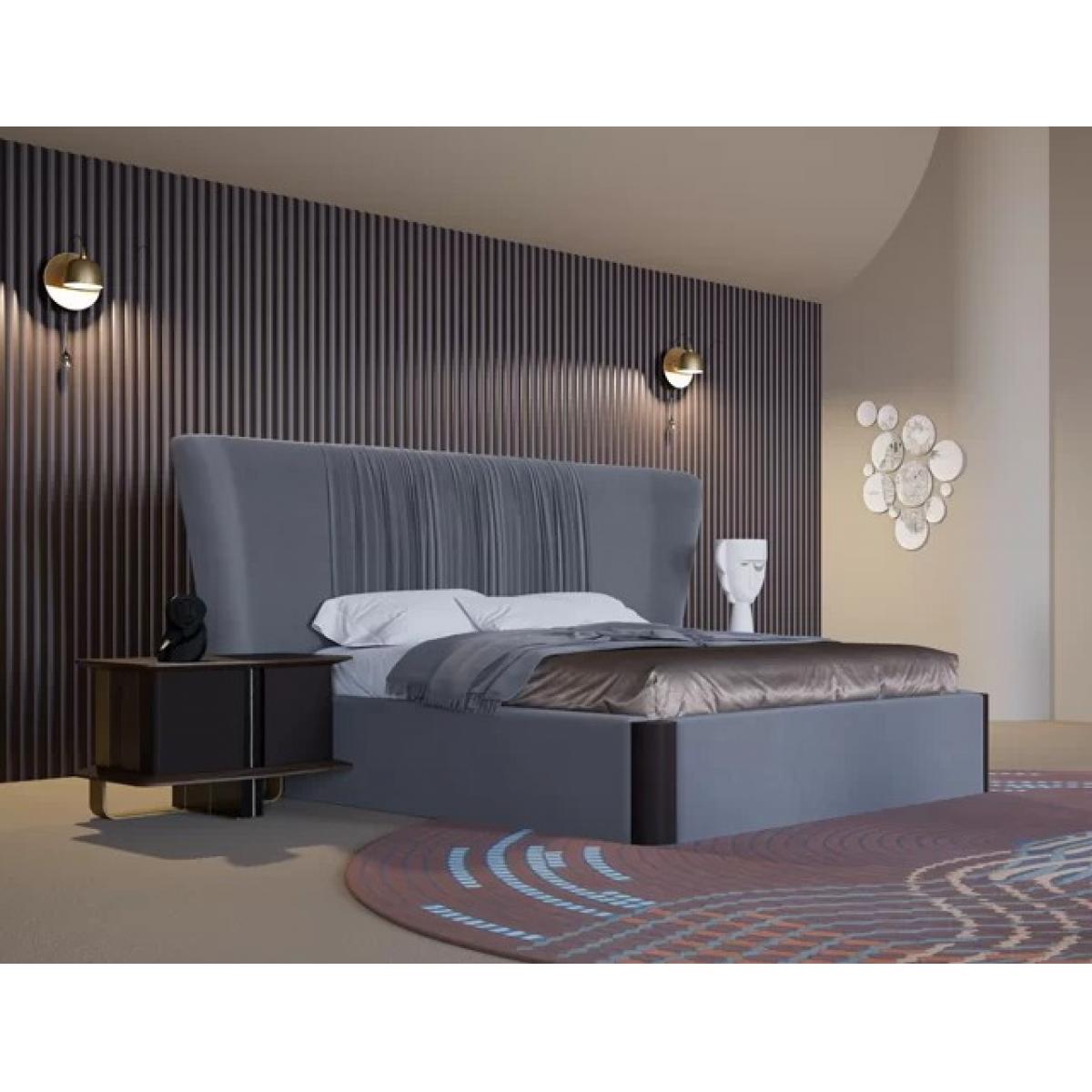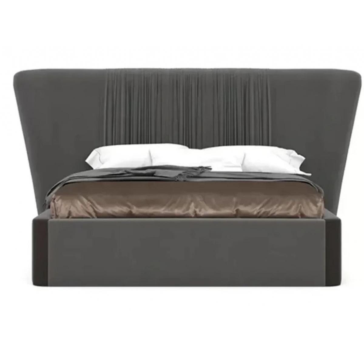 Grey Headboard Luxury Bed - Modern Bed Design - Master Bedroom Design - Luxury Bedroom Furniture featuring sculptural winged headboard, vertical pleated detailing, and premium grey upholstery. This luxury upholstered bed offers refined European elegance, deep comfort, and modern sophistication for luxury bedrooms.