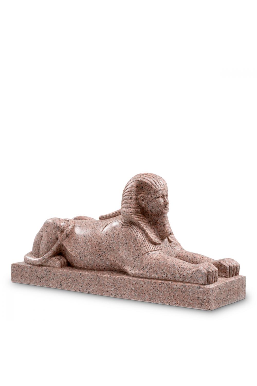 Expertly handcarved from natural granite, the sculpture’s surface showcases organic variations in tone and veining, reflecting the timeless authenticity of the material. The polished finish accentuates its refined contours, echoing the grandeur of monumental Egyptian artistry.