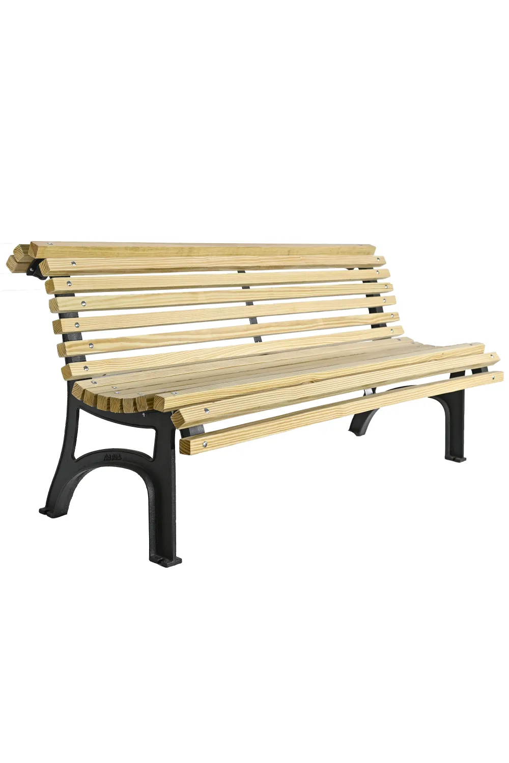 The seat, crafted from Bulgarian spruce, tropical hardwood, or American impregnated pine, radiates organic warmth and authenticity. Each bench is reinforced with structural steel profiles to enhance stability and endurance — ensuring that elegance and strength coexist harmoniously.