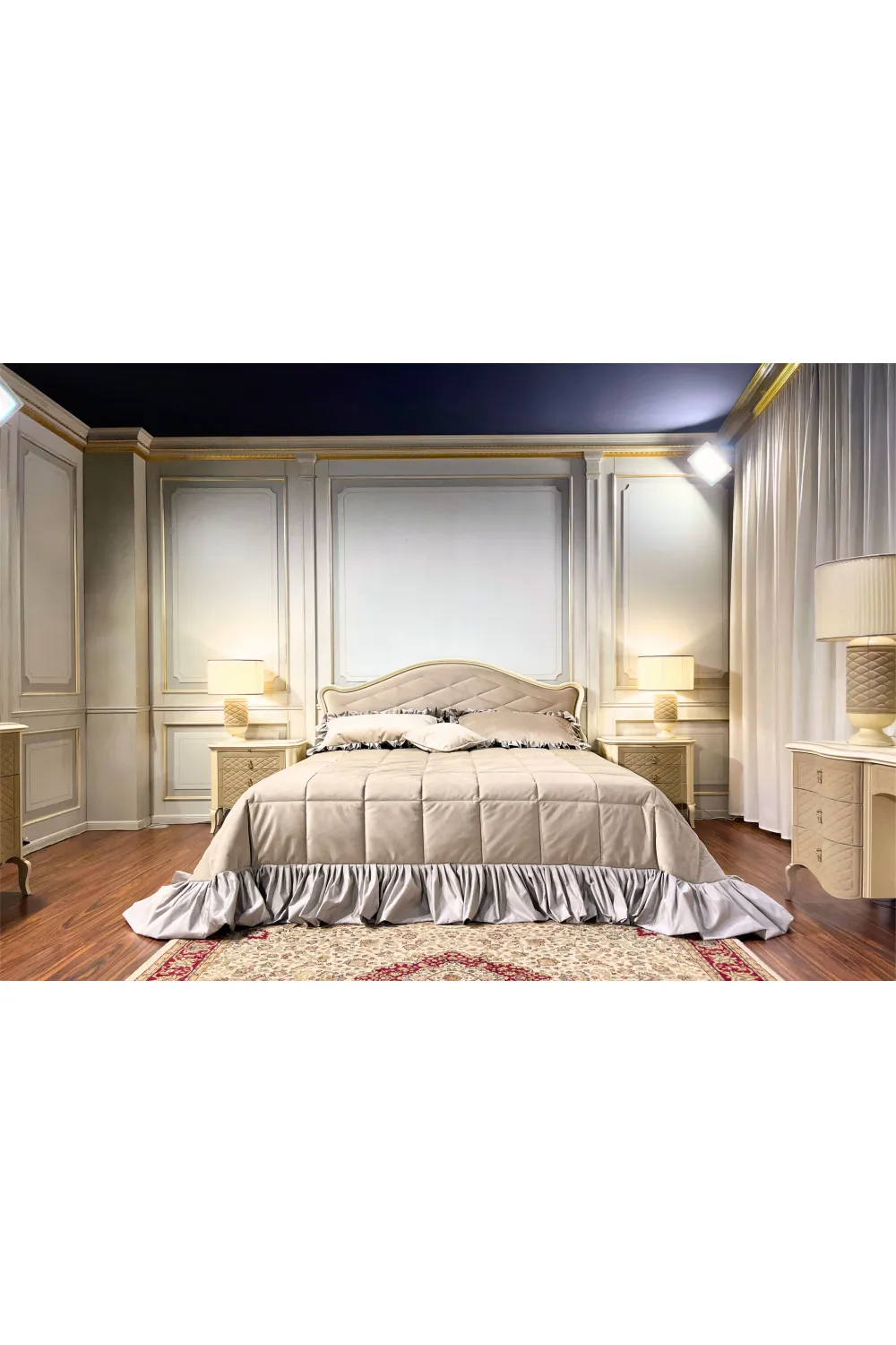 Designed to host a 200x200 cm slatted wood base, the bed balances strong structure with regal aesthetics, ensuring both longevity and luxury. Whether placed in a grand villa, boutique hotel, or private residence, this masterpiece defines a space of timeless beauty — where each morning begins and every night ends in royal comfort.