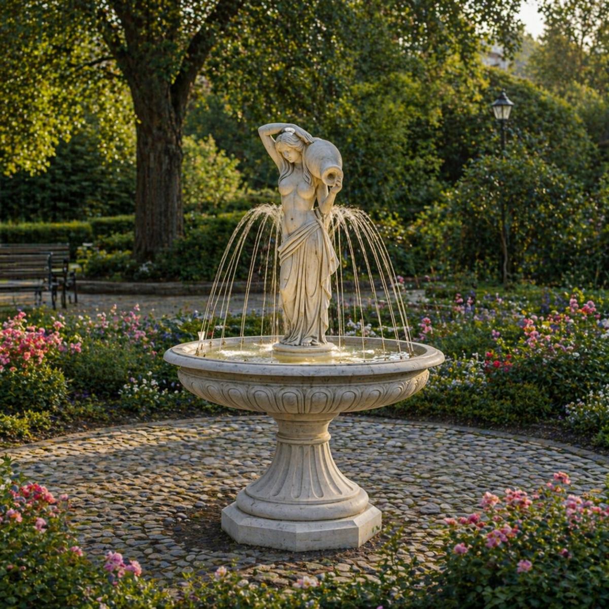 - Elegante fontana barocca artigianale con design a scultura femminile