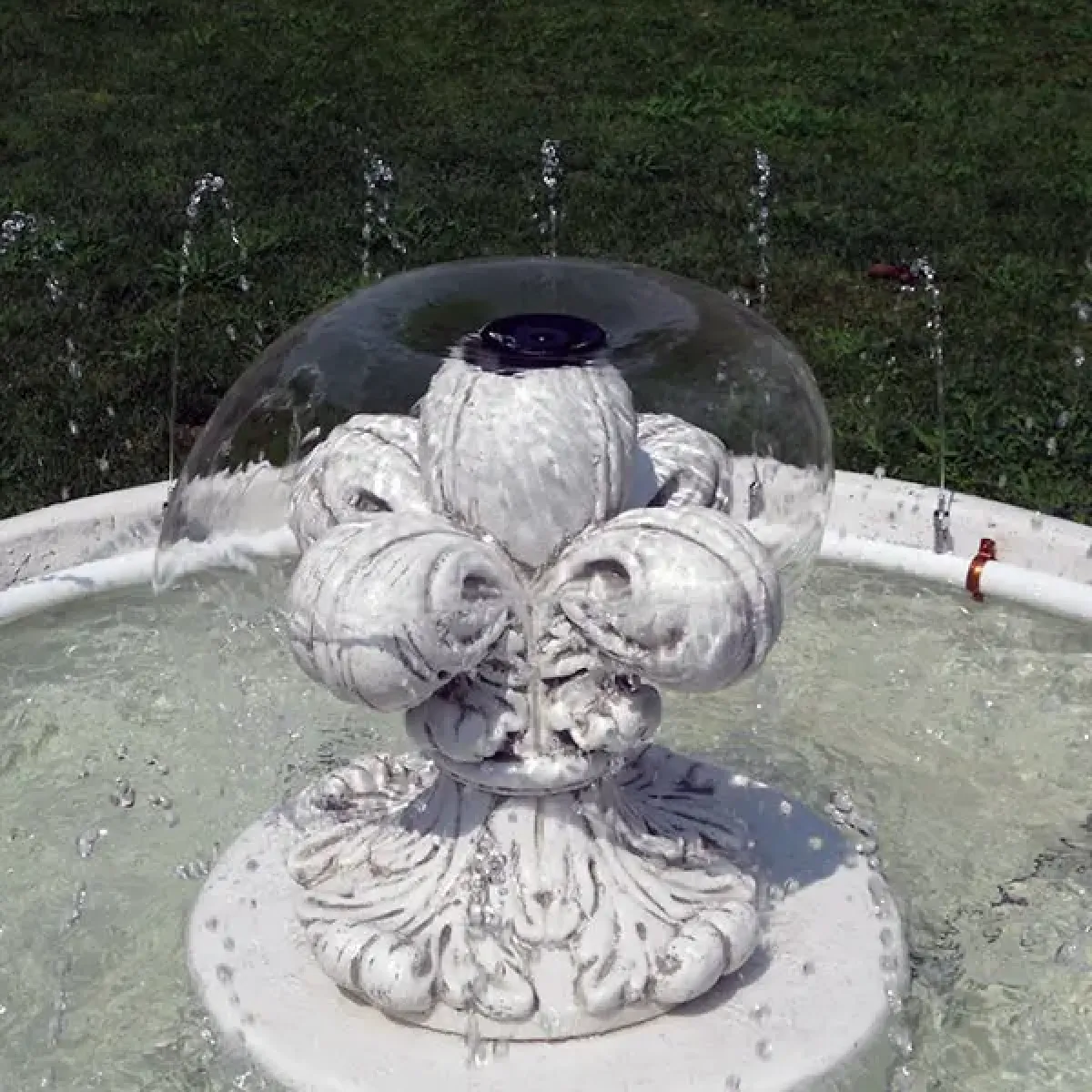 Fontana d'Acqua Illuminata di Lusso con Cupola Floreale Barocca e Bacino Circolare è una fontana barocca di grande impatto che unisce il design classico a effetti d'acqua contemporanei. Al centro, un elemento floreale finemente scolpito è valorizzato da una cupola d'acqua trasparente, creando un effetto visivo affascinante mentre l'acqua scorre con grazia e si irradia verso l'esterno in archi simmetrici. Questa raffinata fontana d'acqua dona movimento, armonia e una presenza artistica a giardini, cortili e ambienti esterni paesaggistici.