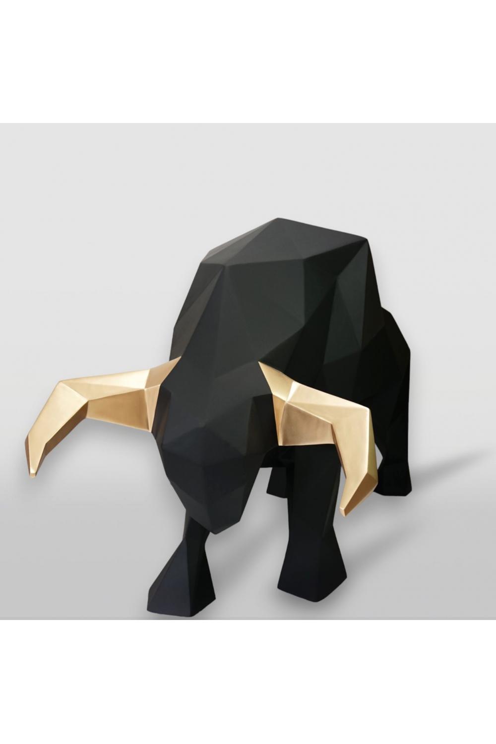 Large Geometric Bull Sculpture – Black with Golden Horns
