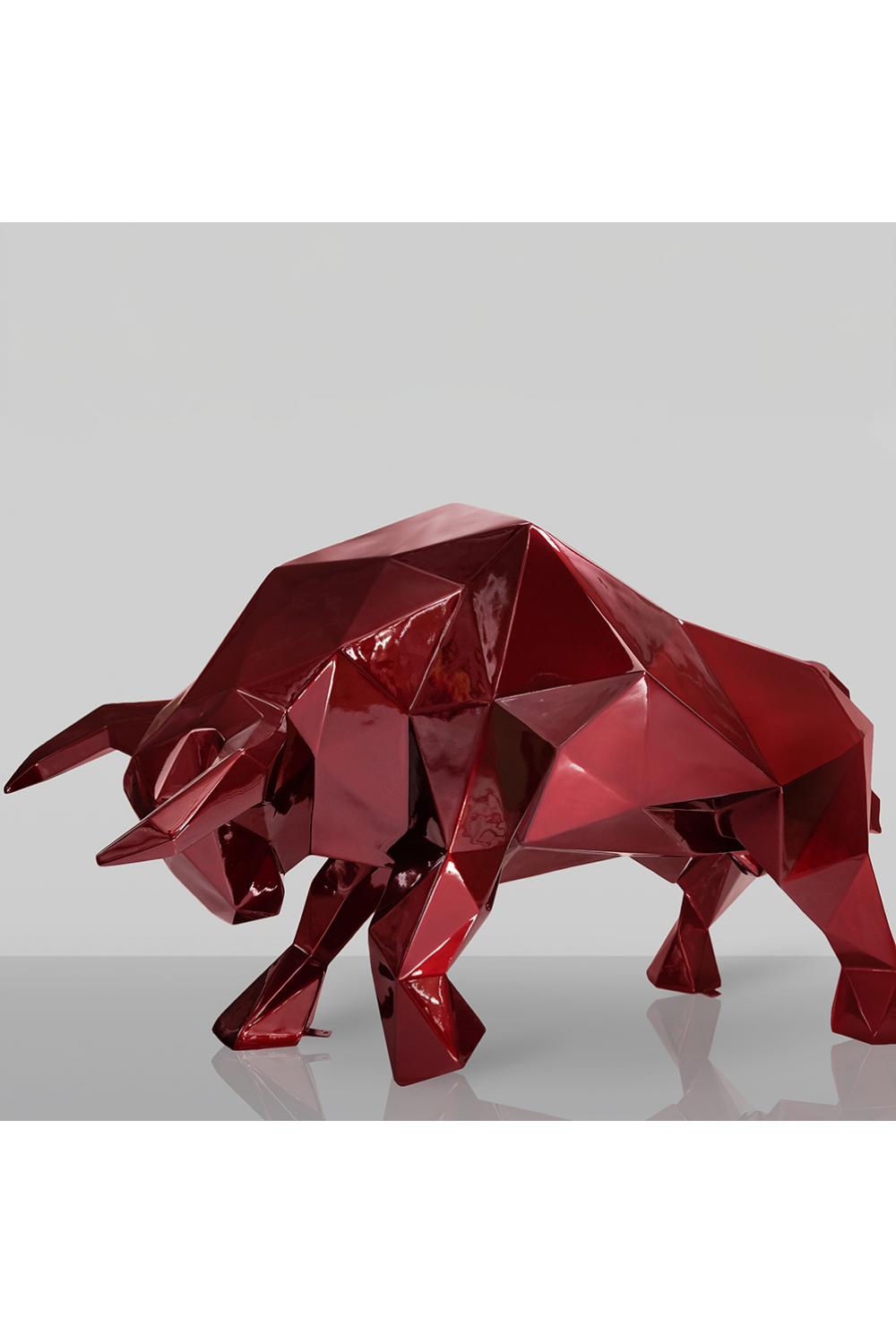 Large Geometric Bull Sculpture – Bordeaux Finish