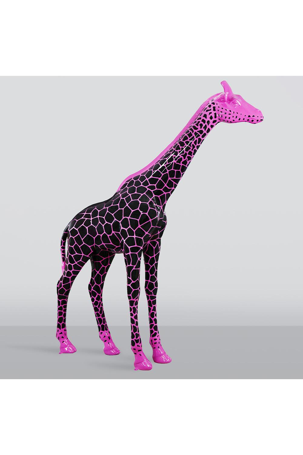 Whether displayed indoors or outdoors, this Pink & Black Giraffe Sculpture radiates charm, sophistication, and a bold artistic flair that transforms any environment.