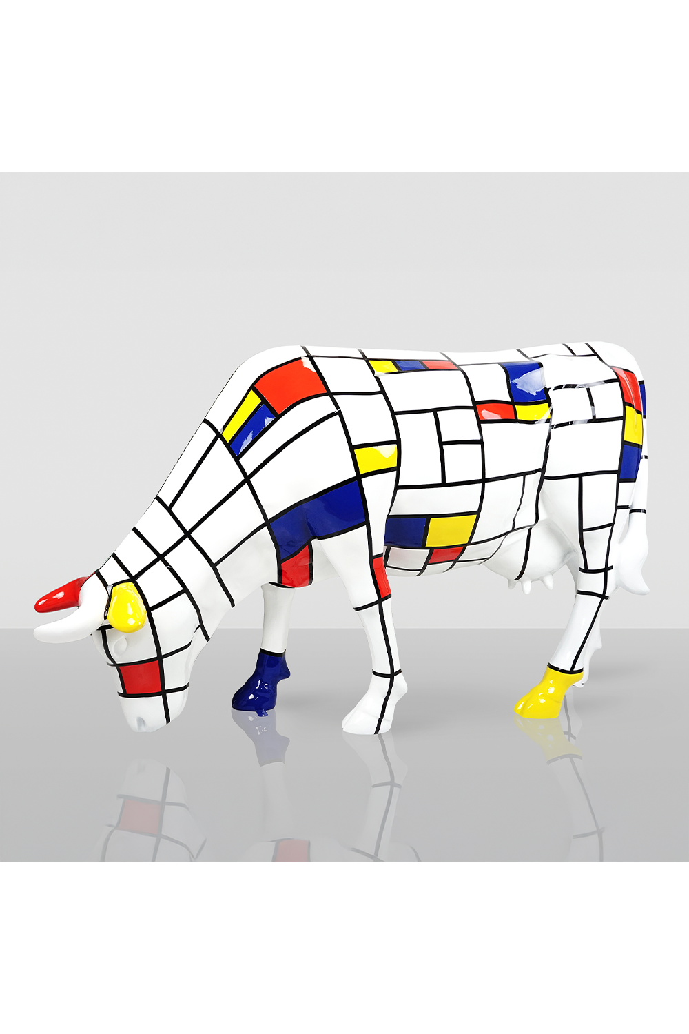 Large Hand-Painted Cow Sculpture – Mondrian Motif