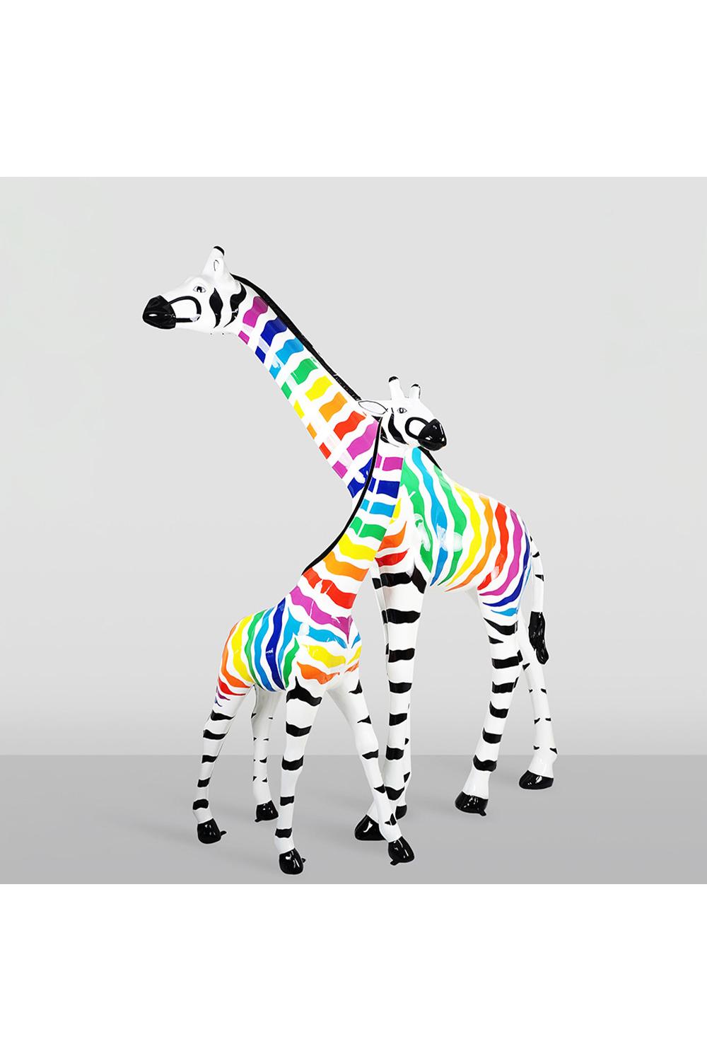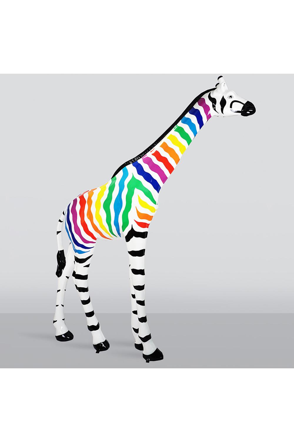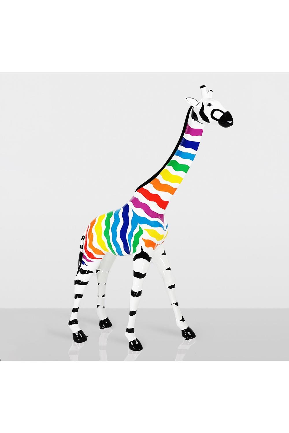 Home > Sculptures & Statues > XXL Sculptures (Hotel & Garden) > Life-Size Giraffe Sculpture – Colorful Zebra Stripes
