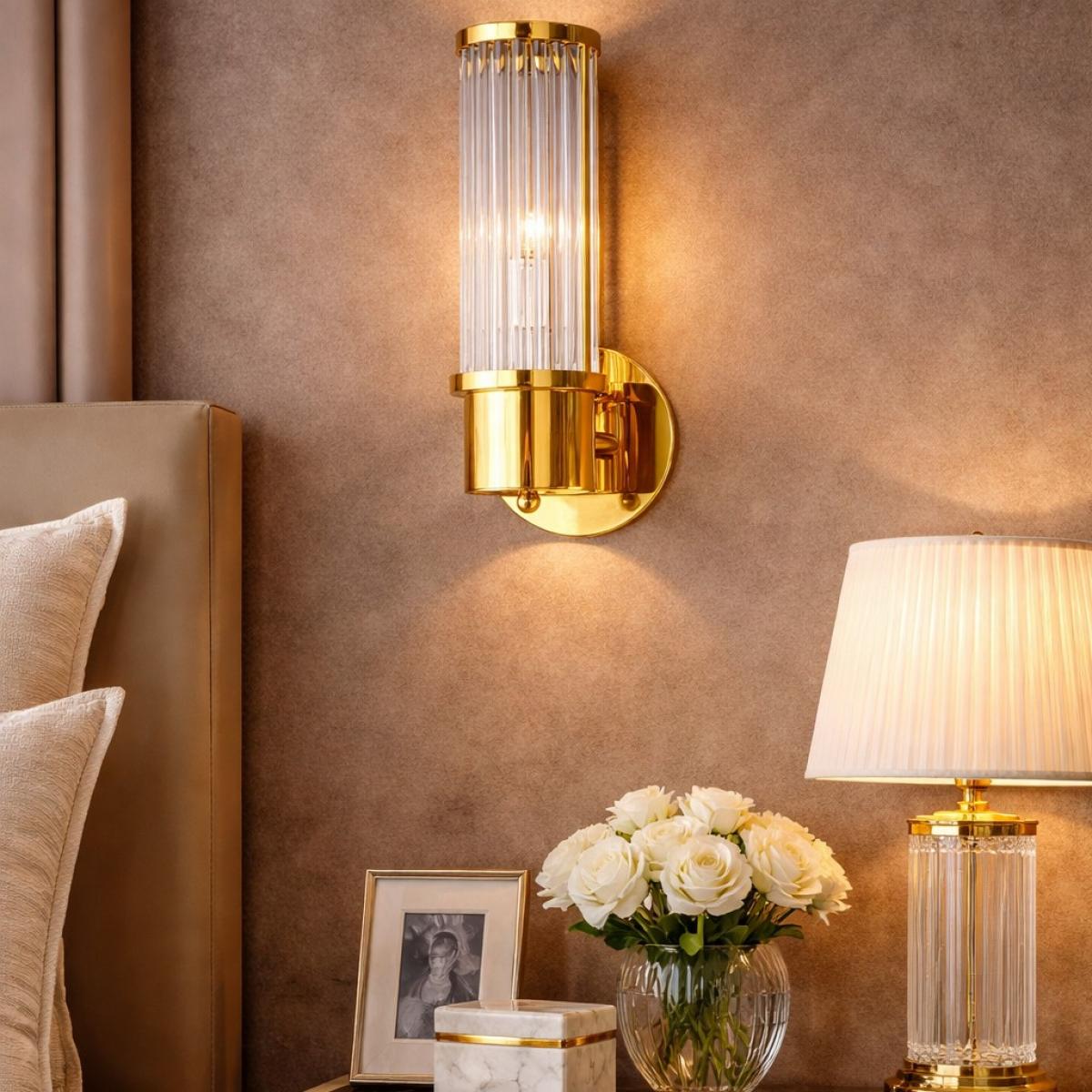 For a more complete luxury lighting experience, consider pairing this wall lamp with our luxury chandeliers or explore our luxury nightstands to complement your space. For a more luxurious lighting experience, explore our Art Deco Style 3-Tier Polished Brass Hand-Blown Glass Rod Wall Lamp to complement your space with timeless elegance.