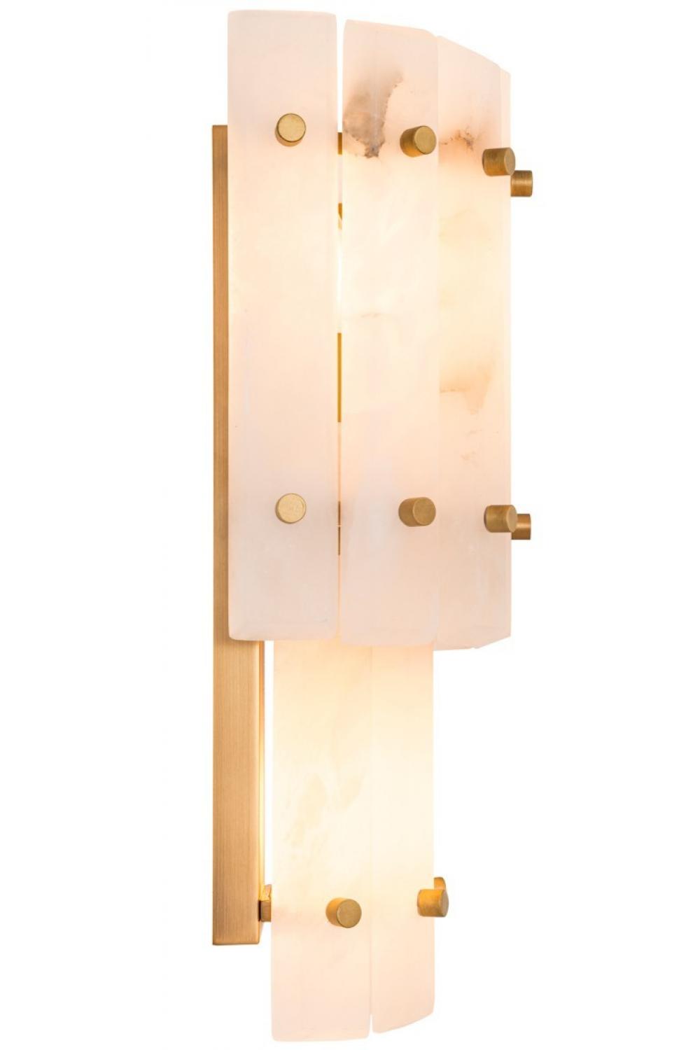 Luxury wall lamp crafted in natural alabaster with an antique brass finish, designed to elevate interiors with sculptural elegance. This luxury wall lamp offers a refined glow as an alabaster wall lamp for sophisticated living spaces.