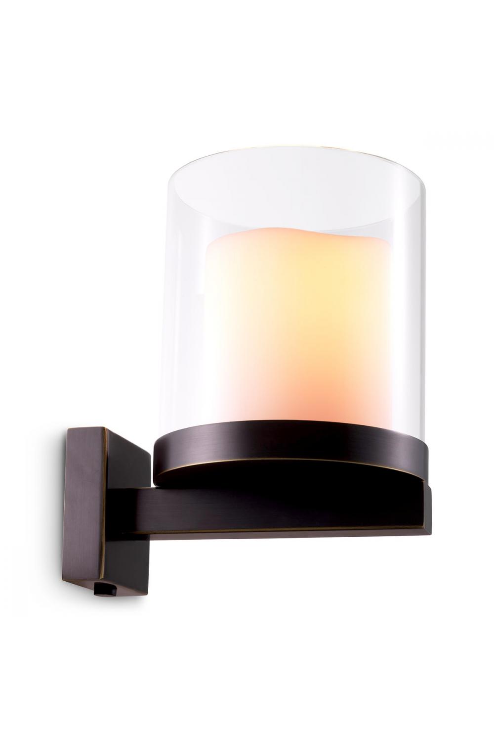 The softly aged brass structure adds depth and richness, while the handcrafted clear glass lantern allows light to glow naturally from within. The included faux candle enhances the atmospheric effect, evoking the romance of traditional wall-mounted lanterns without compromising modern comfort. As a luxury wall lamp, it creates a gentle, ambient illumination that enhances walls with subtle sophistication.