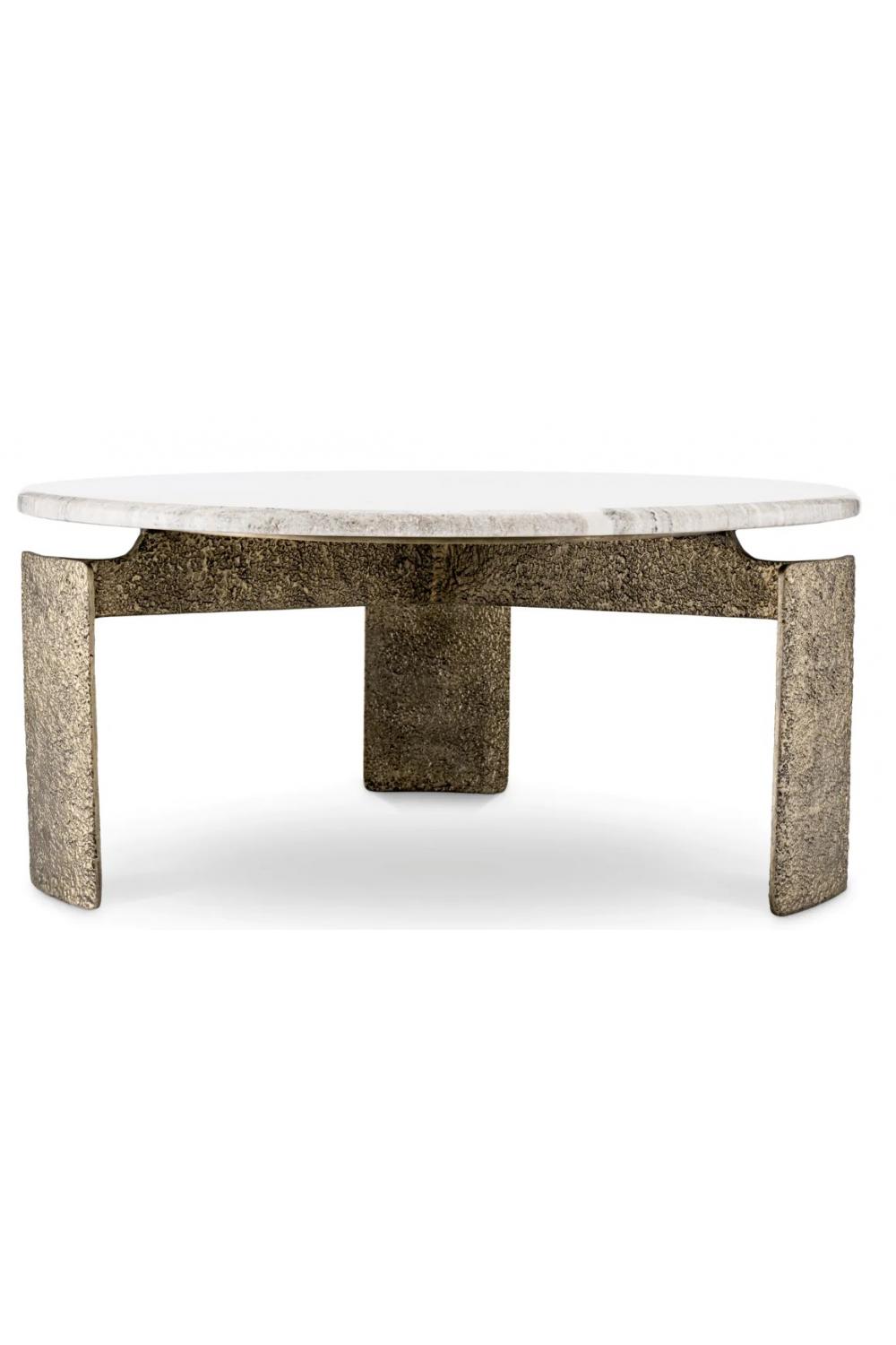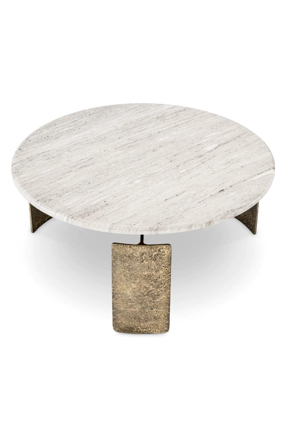 Luxury Antique Brass Finish Coffee Table With Round Beige Marble Top