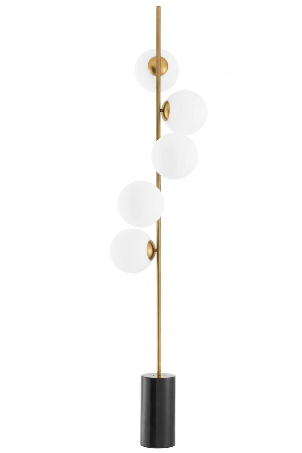 Elevate your interiors with this luxury floor lamp, featuring an antique brass floor lamp design with 5 spherical glass lampshades. Perfect as a modern floor lamp or designer floor lamp for your living room or bedroom, this standing floor lamp combines elegance with functionality.