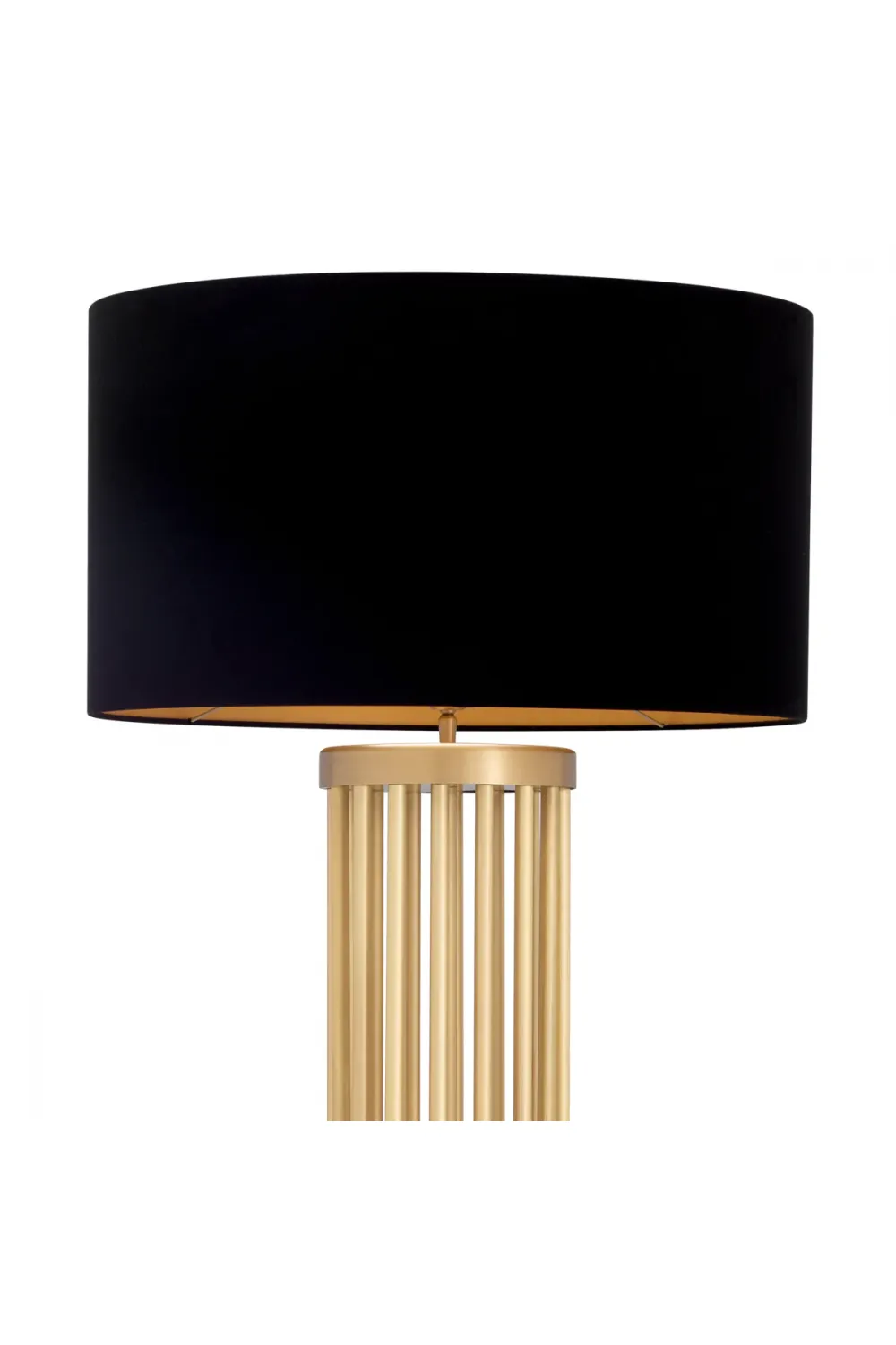Luxury Antique Brass Finish Floor Lamp with Black Marble Base
