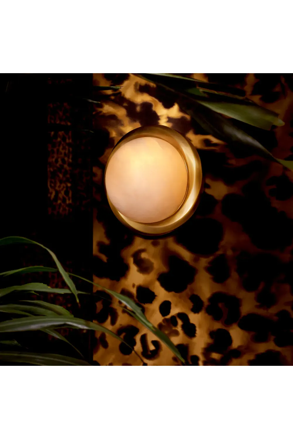 At the heart of this design is the natural alabaster stone wall light diffuser, which is meticulously crafted to showcase the organic veins of the stone. This luxury alabaster dome wall lamp provides a premium soft glow stone lighting effect, making it an ideal upscale corridor brass wall mount or a designer alabaster bedroom wall lamp focal point. The modern alabaster globe wall sconce style ensures that light is softened and inviting, highlighting the elegant brass and stone lighting harmony. Whether functioning as a contemporary alabaster stone sconce or a simple antique brass round wall sconce, the fixture provides an understated yet luxurious design.