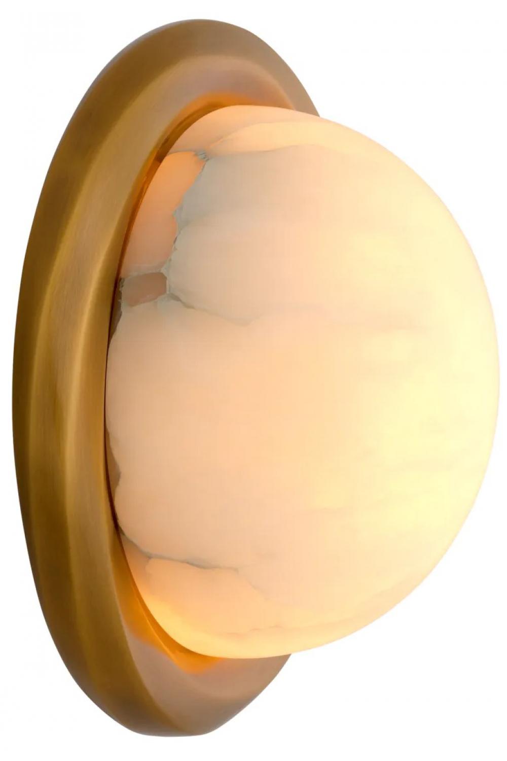 Home > Lighting > Wall Lamps > Luxury Antique Brass Finish Round Wall Lamp with Alabaster