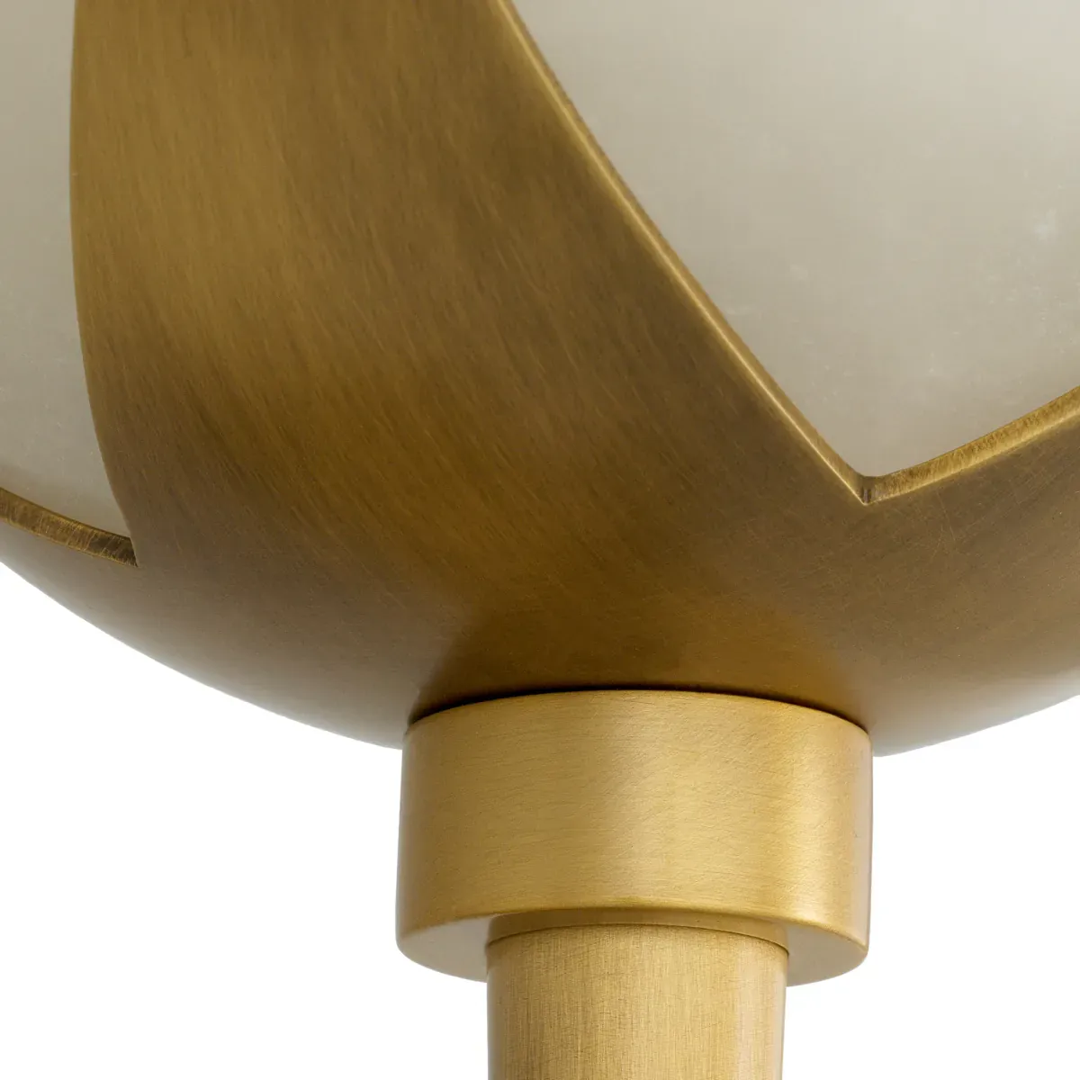 Luxury wall lamp presence meets refined geometry in a single alabaster globe wall lamp design that feels both sculptural and soothing. In collaboration with Corey Damen Jenkins, this wall lamp is shaped around a study in celestial balance—where the round globe and crisp architectural lines work together like a quiet orbit. The overall form is intentionally restrained, allowing the warm, antique brass tone to frame the light without overpowering it.