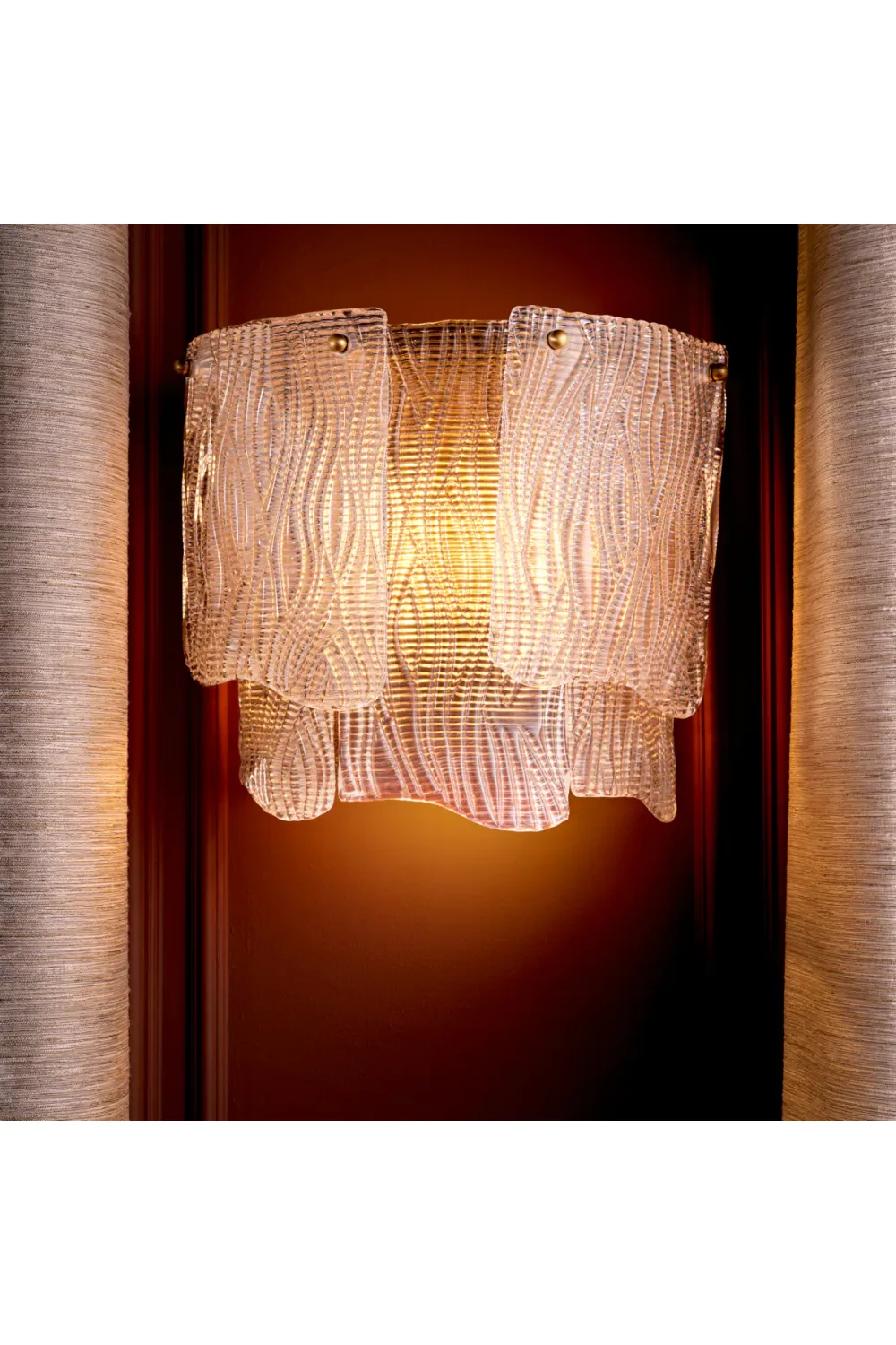 • Artisanal glass wall lamps offer a unique silhouette that embodies contemporary luxury.