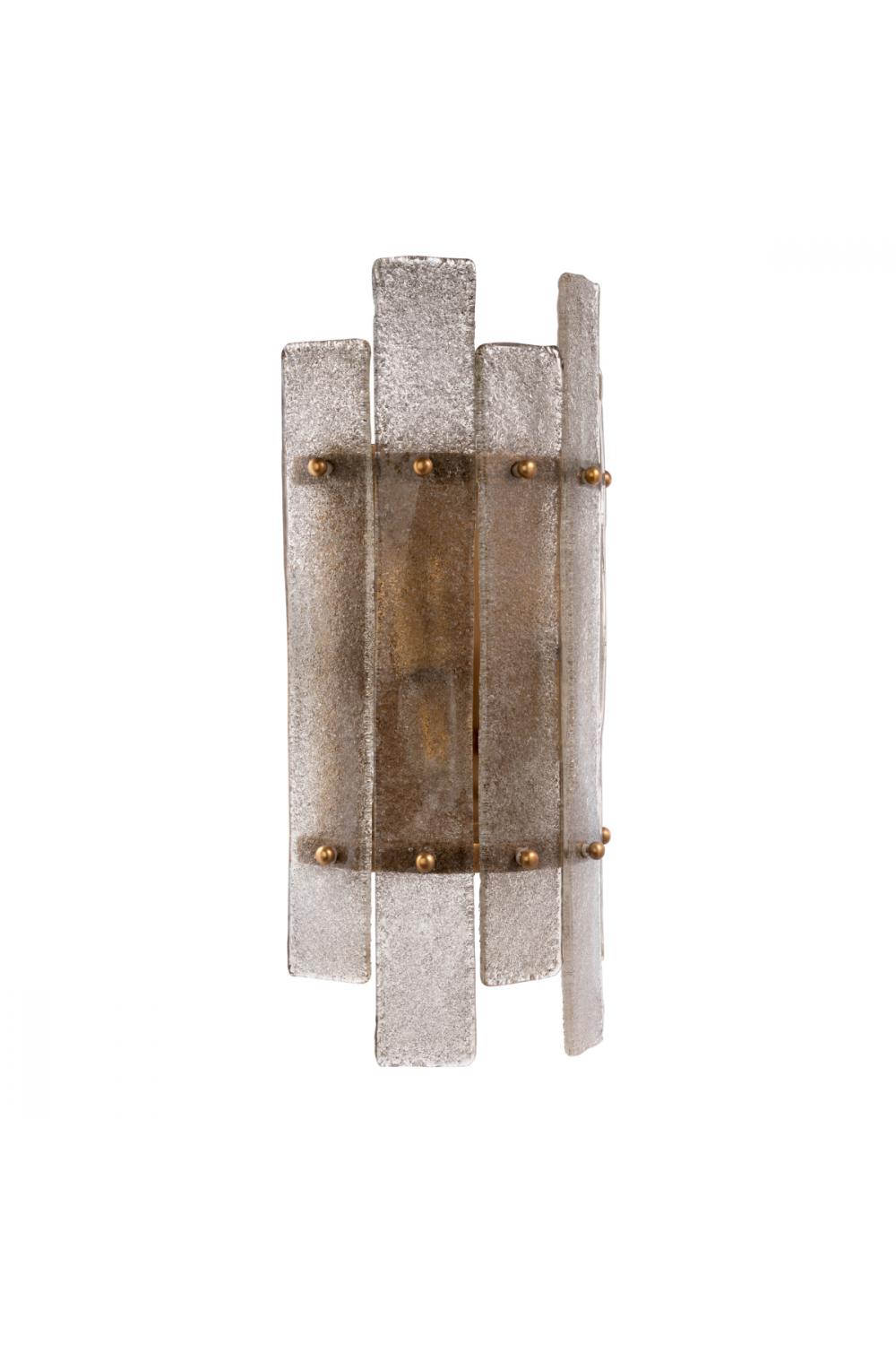 The semi-circular shade is formed from individually crafted glass planes, highlighting the artisanal nature of this hand blown glass wall lamp. Each piece reflects subtle variations, ensuring a unique lighting experience that feels authentic and refined. The softly diffused light creates an inviting atmosphere, ideal for living rooms, hallways, bedrooms, or boutique hospitality interiors where layered illumination is essential.