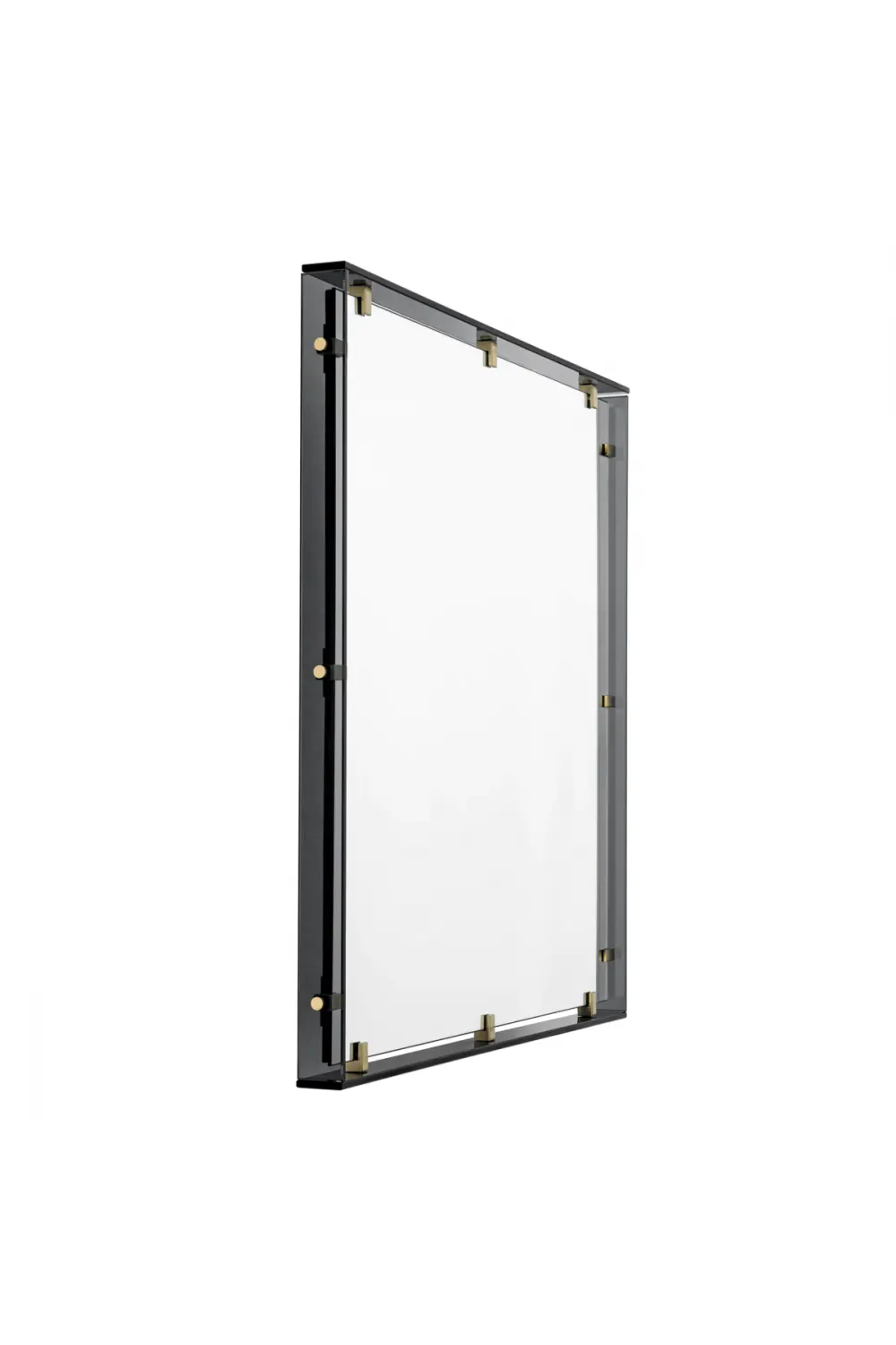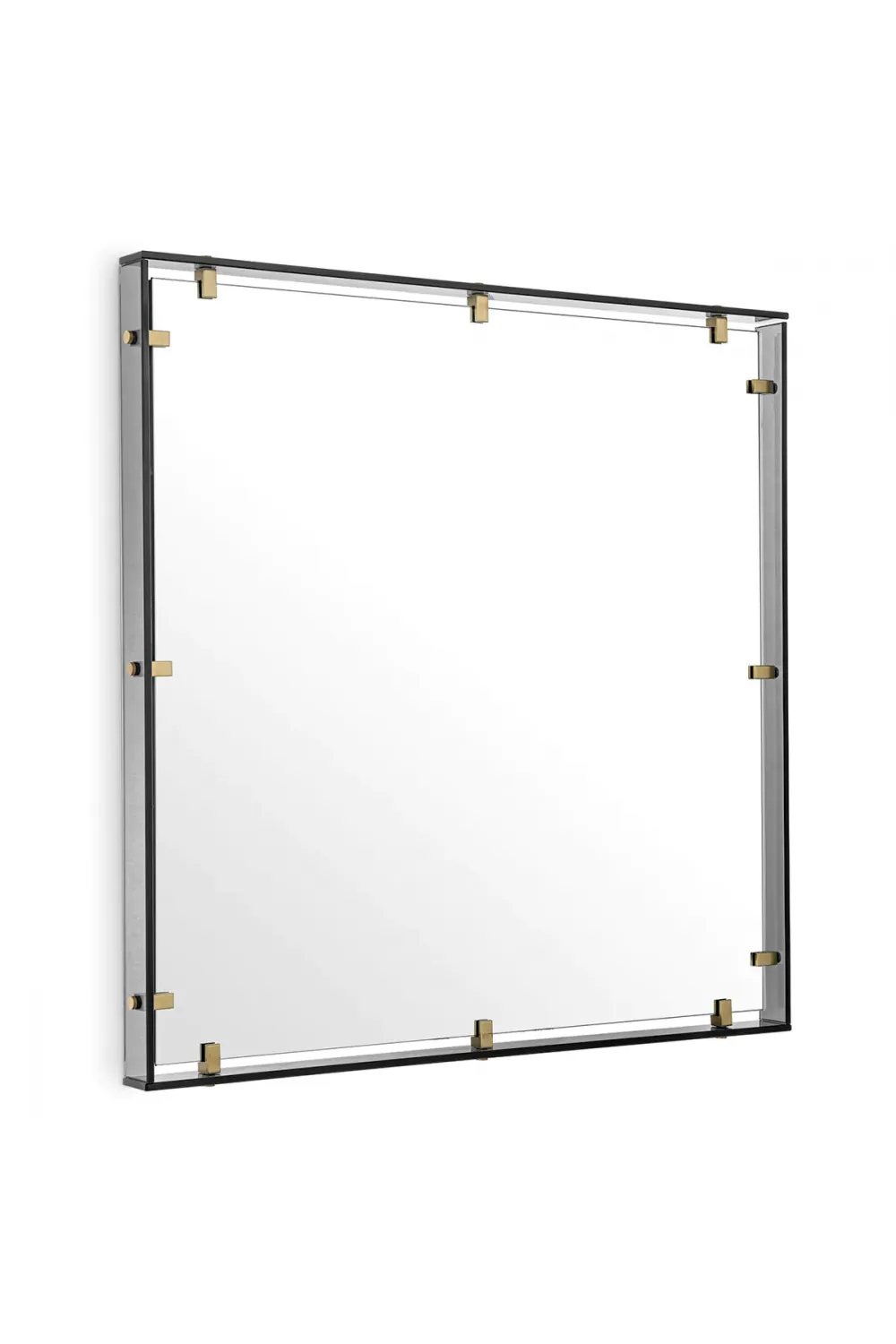 Ideal for living rooms, hallways, lounges, or boutique hotel environments, the mirror elevates natural light and creates depth with its subtly tinted surface. The smoked glass provides a soft tonal contrast that harmonizes beautifully with metallic décor and warm lighting. Its detailed craftsmanship makes it appealing to those seeking the atmospheric tones of a smoke glass mirror or the warm metallic character of a brass finish mirror in a versatile square mirror format.