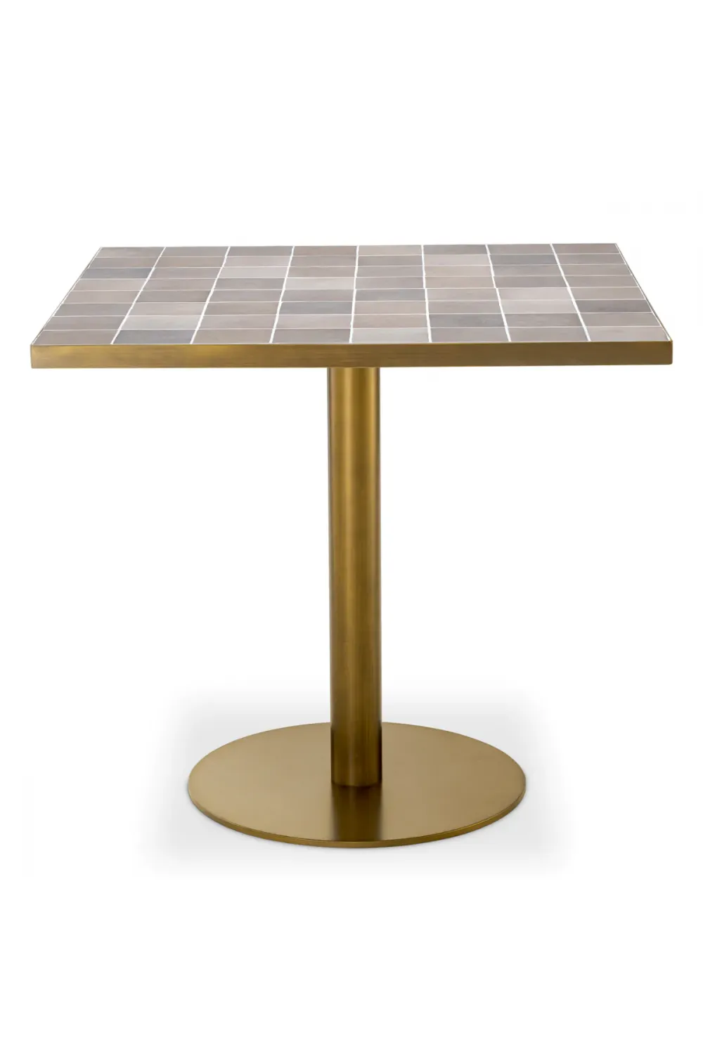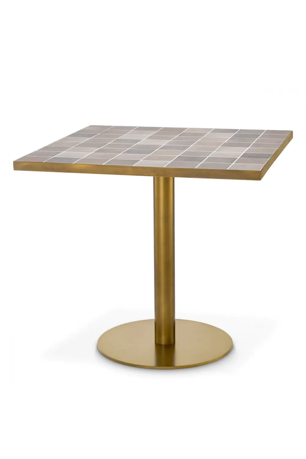 Luxury Antique Brass Square Dining Table with Beige Ceramic Inlay