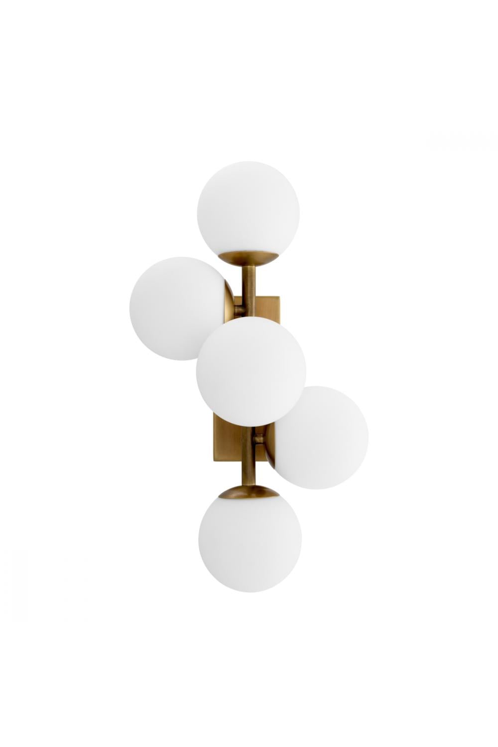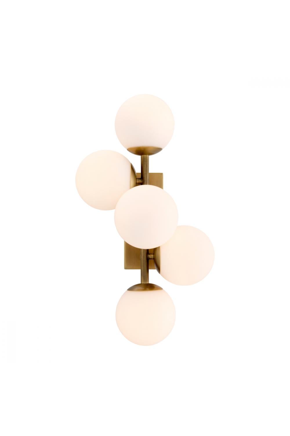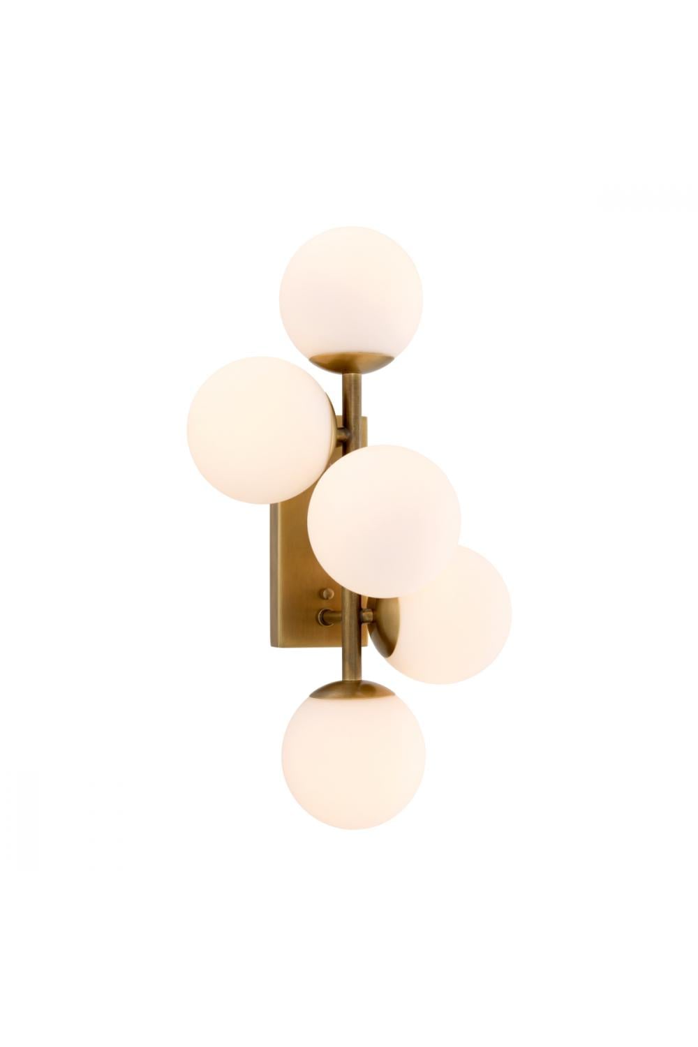 Designed for discerning European interiors, this luxury wall lamp combines sculptural balance with timeless elegance. The composition features a refined antique brass framework supporting four spherical white glass shades, creating an airy and glamorous lighting statement that enhances both contemporary and classic spaces.
