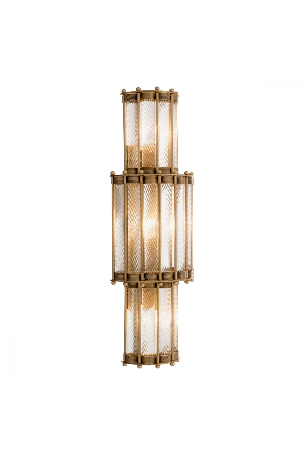 The antique brass structure is paired with meticulously handcrafted clear glass rods, forming a refined cylindrical composition that enhances both form and function. When illuminated, the glass softly diffuses light, producing a warm, ambient glow that enriches wall surfaces without harsh brightness. As a luxury wall lamp, it offers visual depth while maintaining understated restraint.