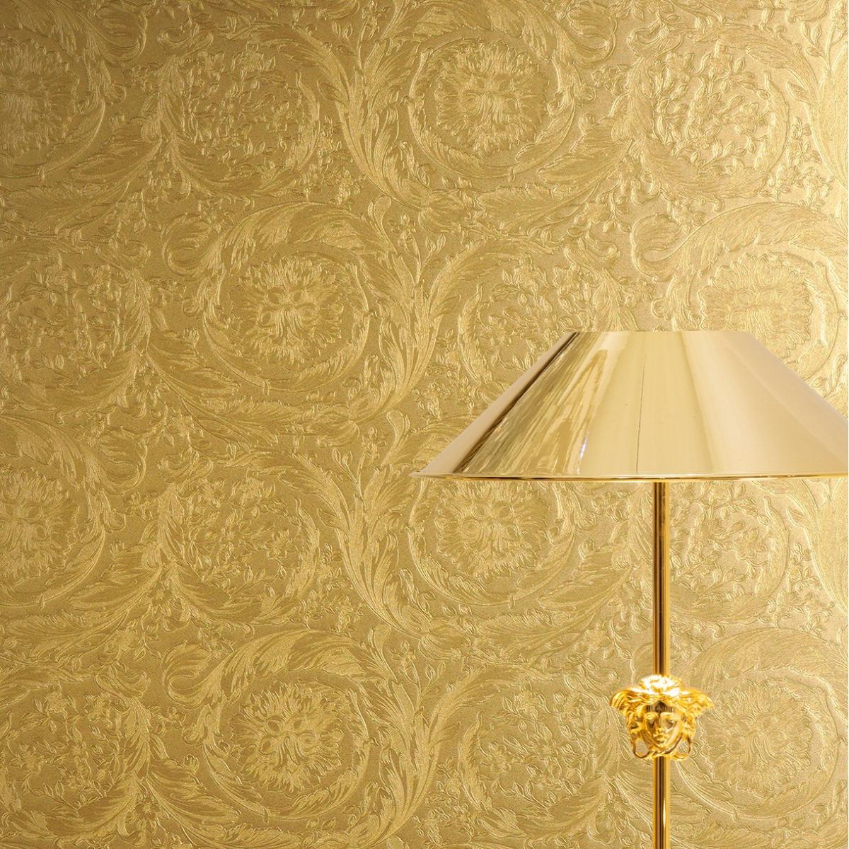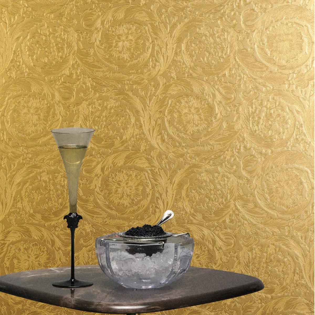 Luxury Antique Gold Baroque Floral Non-Woven Shimmer Versace Wallpaper by Luxury Group International