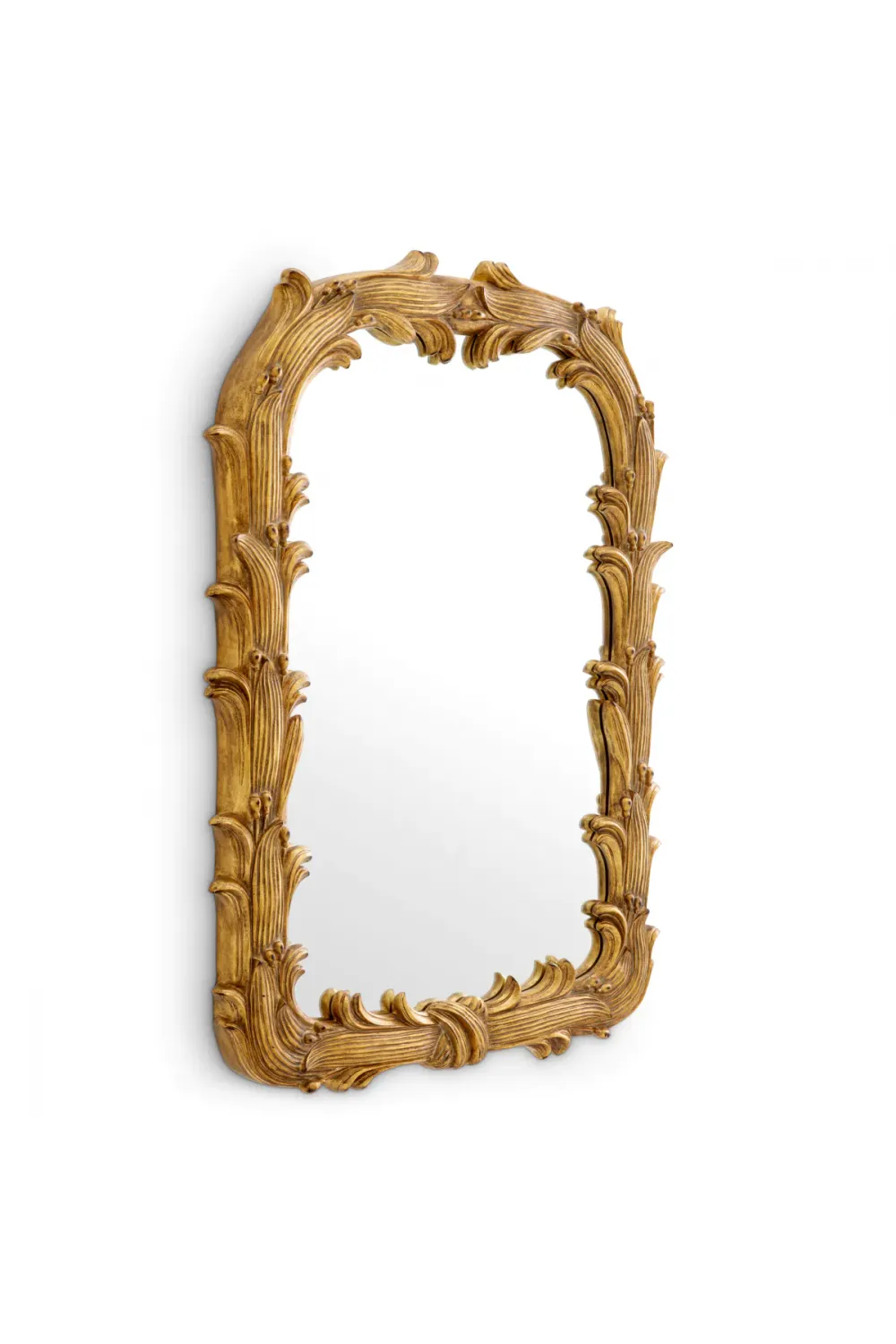 The handcrafted design highlights the mastery of traditional carving techniques, resulting in graceful contours, ornamental depth, and beautifully sculpted texture. This antique gold leaf finish adds an authentic aged effect, capturing the essence of vintage European décor while maintaining the durability and brilliance of premium craftsmanship. Whether paired with classic furniture, opulent fabrics, or modern minimalist settings, the mirror integrates seamlessly and becomes a central focal point. As a decorated mirror, its elaborate frame adds visual richness and character, making it a perfect choice for those who appreciate luxury pieces that celebrate both artistry and heritage.