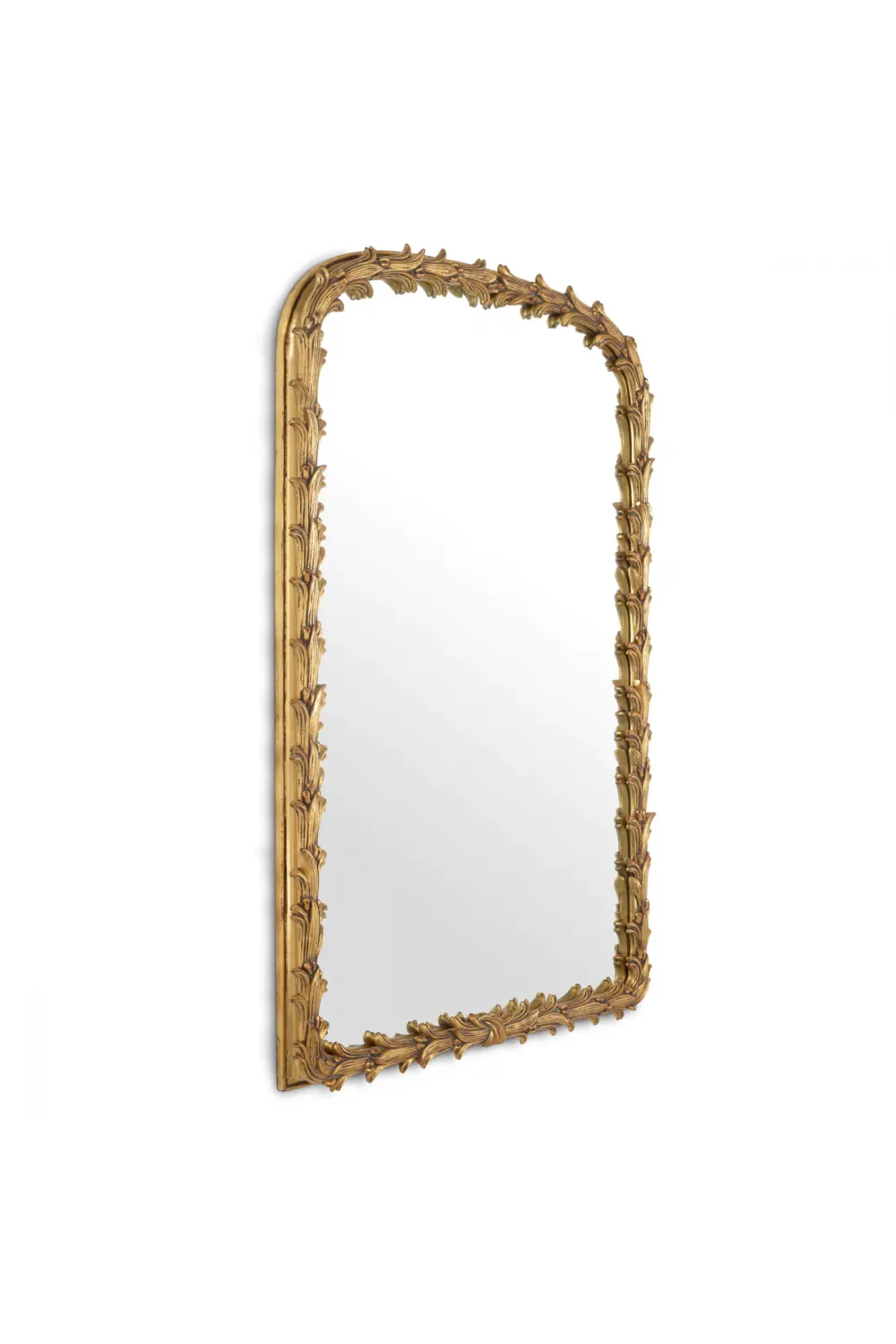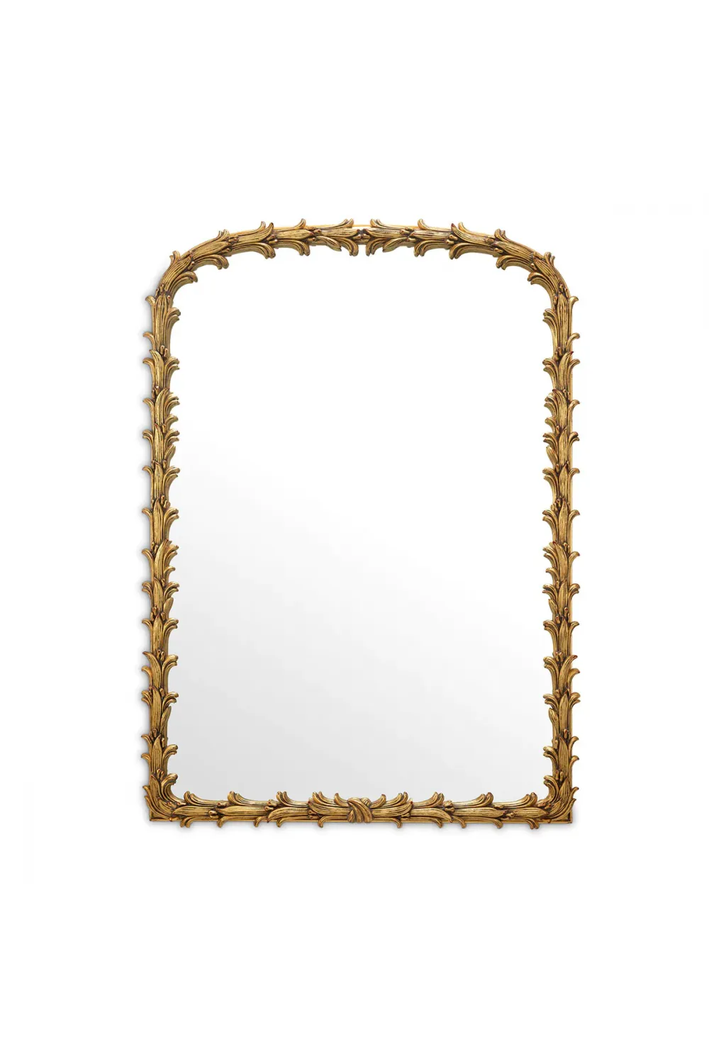 Luxury Antique Gold Leaf-Pattern Border Soft Cornered Rectangular Wall Mirror