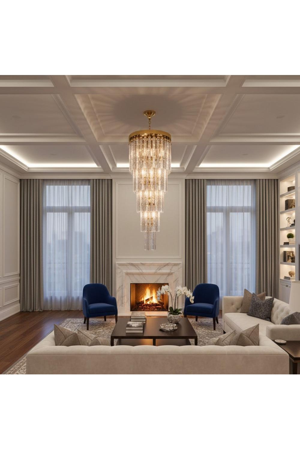 The luxury art deco gold finish chandelier is available in a rich gold finish, offering a radiant and refined glow that suits both classic and contemporary interiors. The sleek, tiered design of this chandelier makes it a showpiece that enhances any room’s ambiance.Complement this luxury art deco gold finish chandelier with the Gold Finish Chandelier with Artistic Elegance for a refined lighting solution that enhances your luxurious living space.