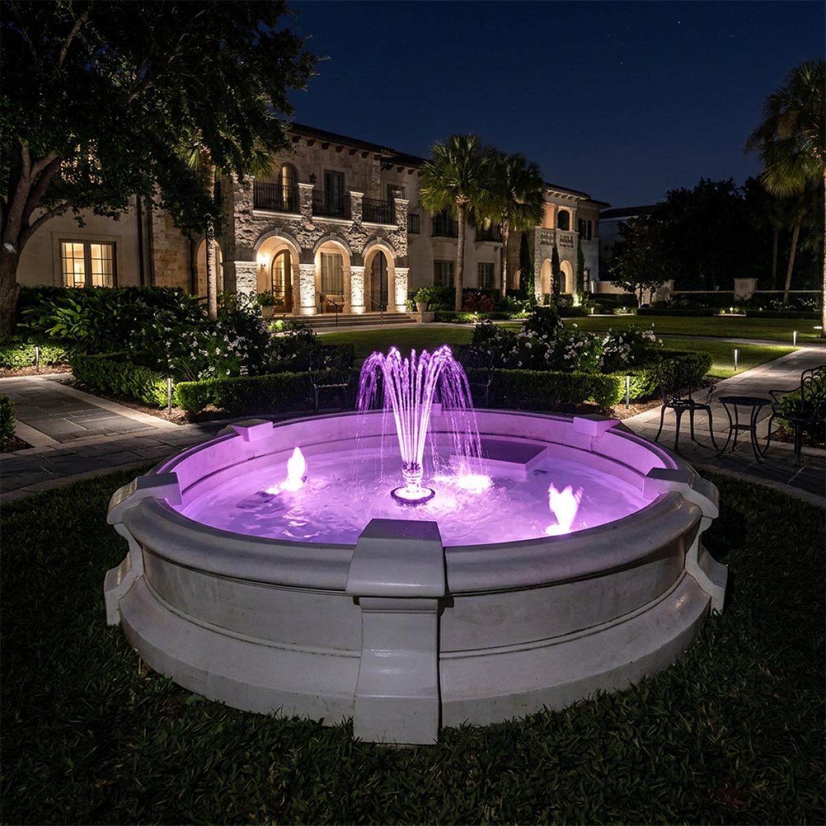 The Luxury Baroque Illuminated Multi-Jet Water Fountain with Circular Reservoir is a sophisticated statement piece designed to elevate refined outdoor environments. This grand baroque fountain features a precision-engineered central multi-jet system that creates a vibrant, upward spray before cascading gracefully into the wide circular basin. The balanced proportions and sculpted reservoir edges reflect classical European design, making this water fountain an ideal focal point for luxury gardens, courtyards, and landscaped estates.