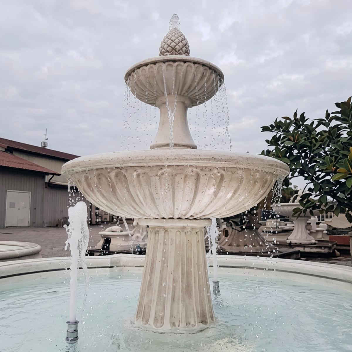 Luxury Baroque Two-Tier Water Fountain with Pinecone Finial in Curved Reservoir - Baroque Fountain by Luxury Group International