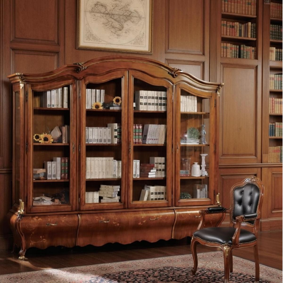An impressive designer multi-door display cabinet crafted in rich baroque-style wood featuring expansive glass panels, a sculpted decorative frame, and an elegant curved storage drawer base. Among the most distinguished luxury display cabinets, it creates a grand luxury showcase for living room décor, books, porcelain collections, and crystal glassware.