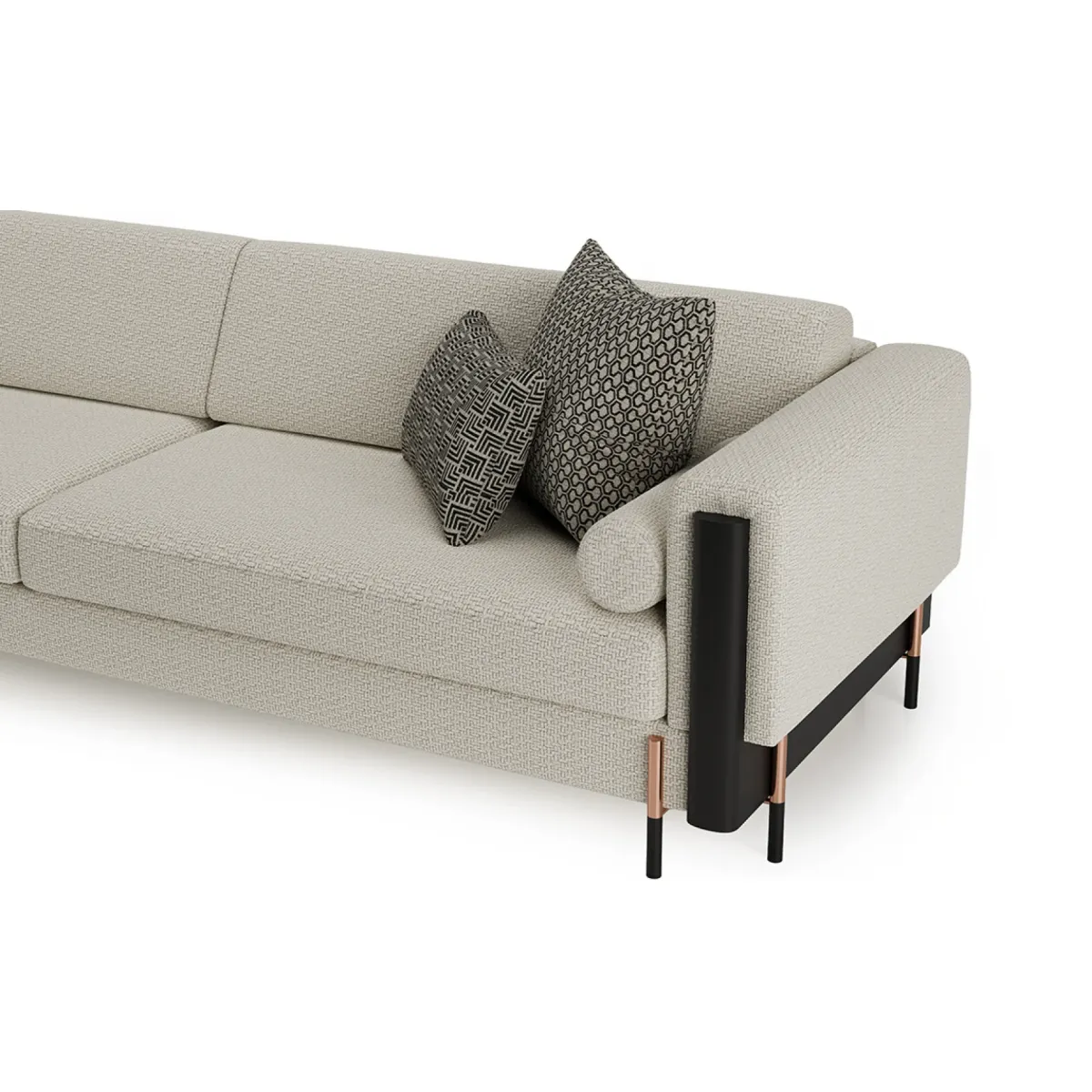 • luxury sofa architectural design with metal arm accents