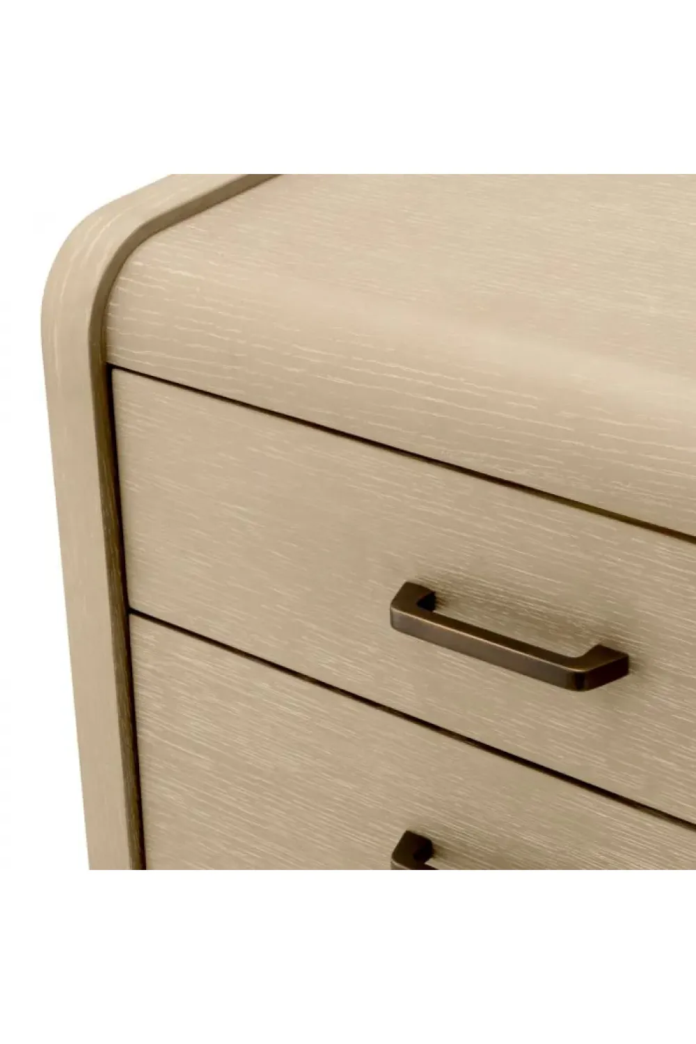 Luxury Beige Washed Oak Veneer Nightstand with Bronze Finish