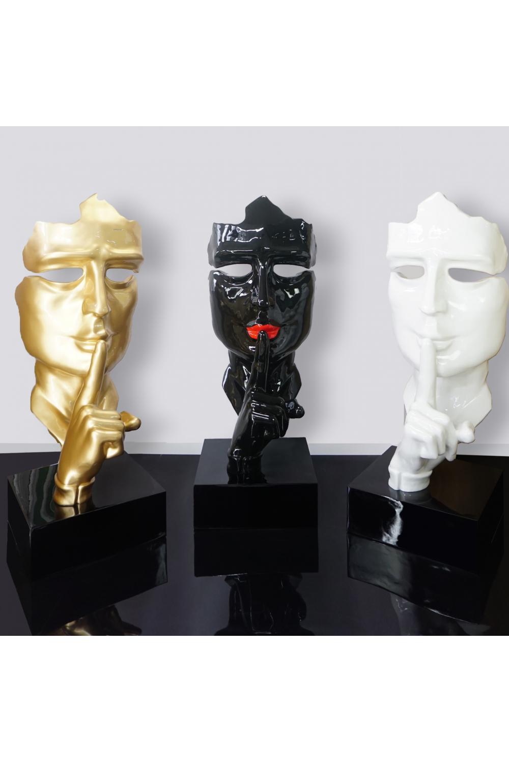 Luxury Black Face Sculpture with Red Lips – Mask of Silence