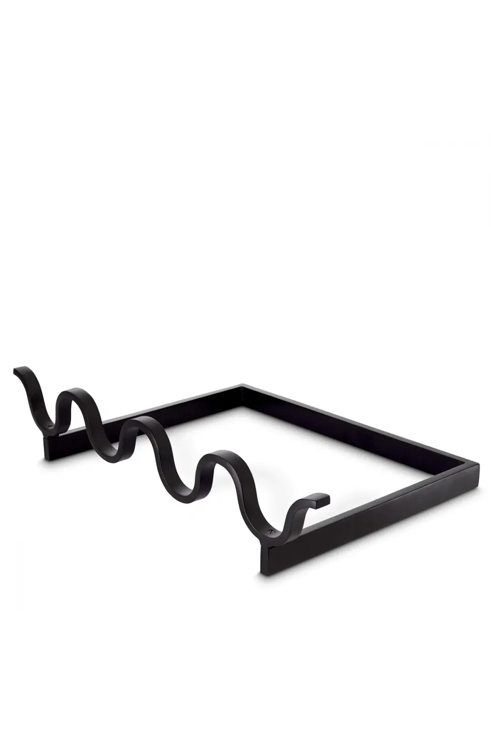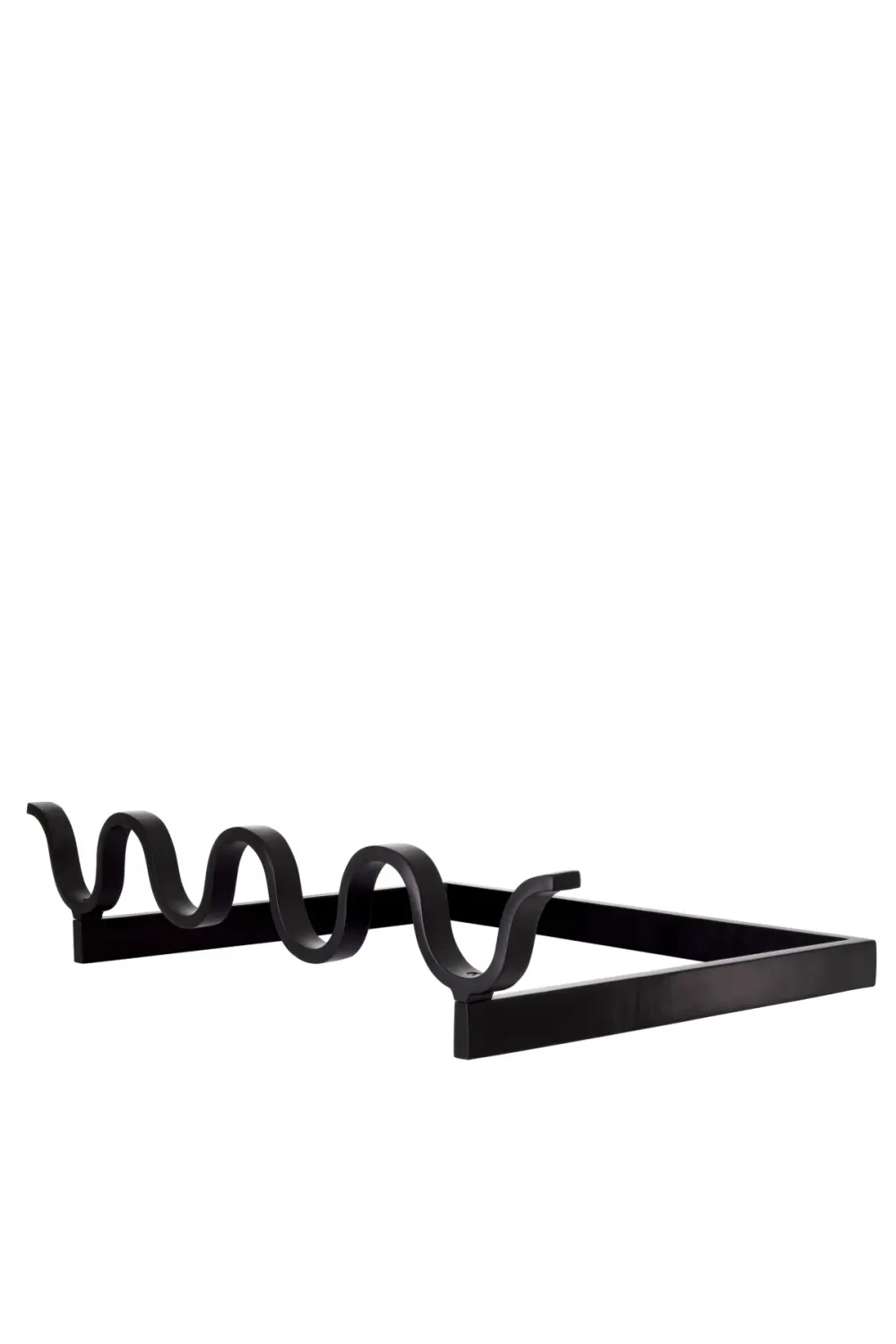 This luxury black finish fireplace tool features a sleek waved front bar and sturdy construction, designed to elevate firewood for cleaner burning. A modern black fireplace log holder, it improves airflow, reduces smoke, and adds refined minimalism to contemporary European interiors.