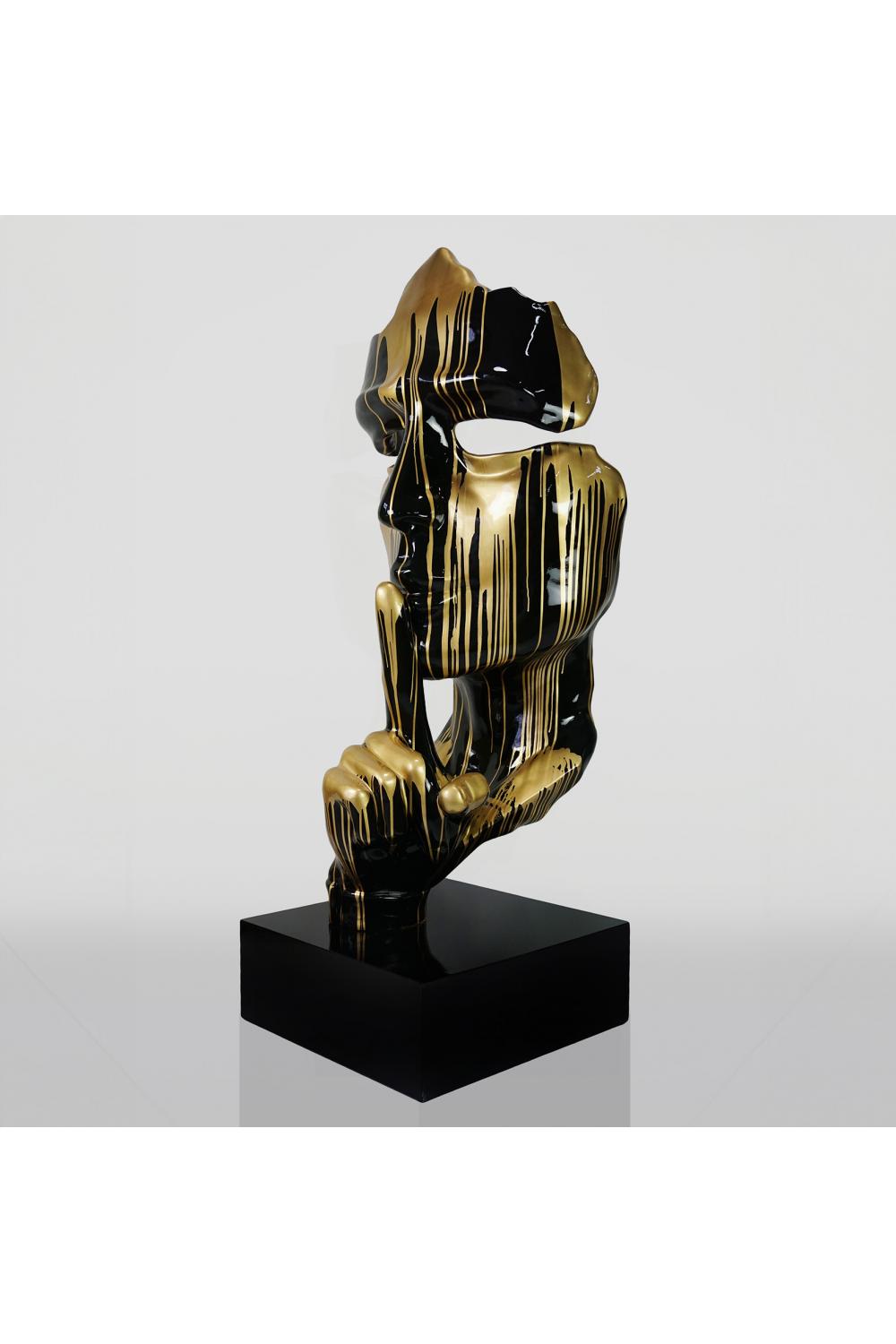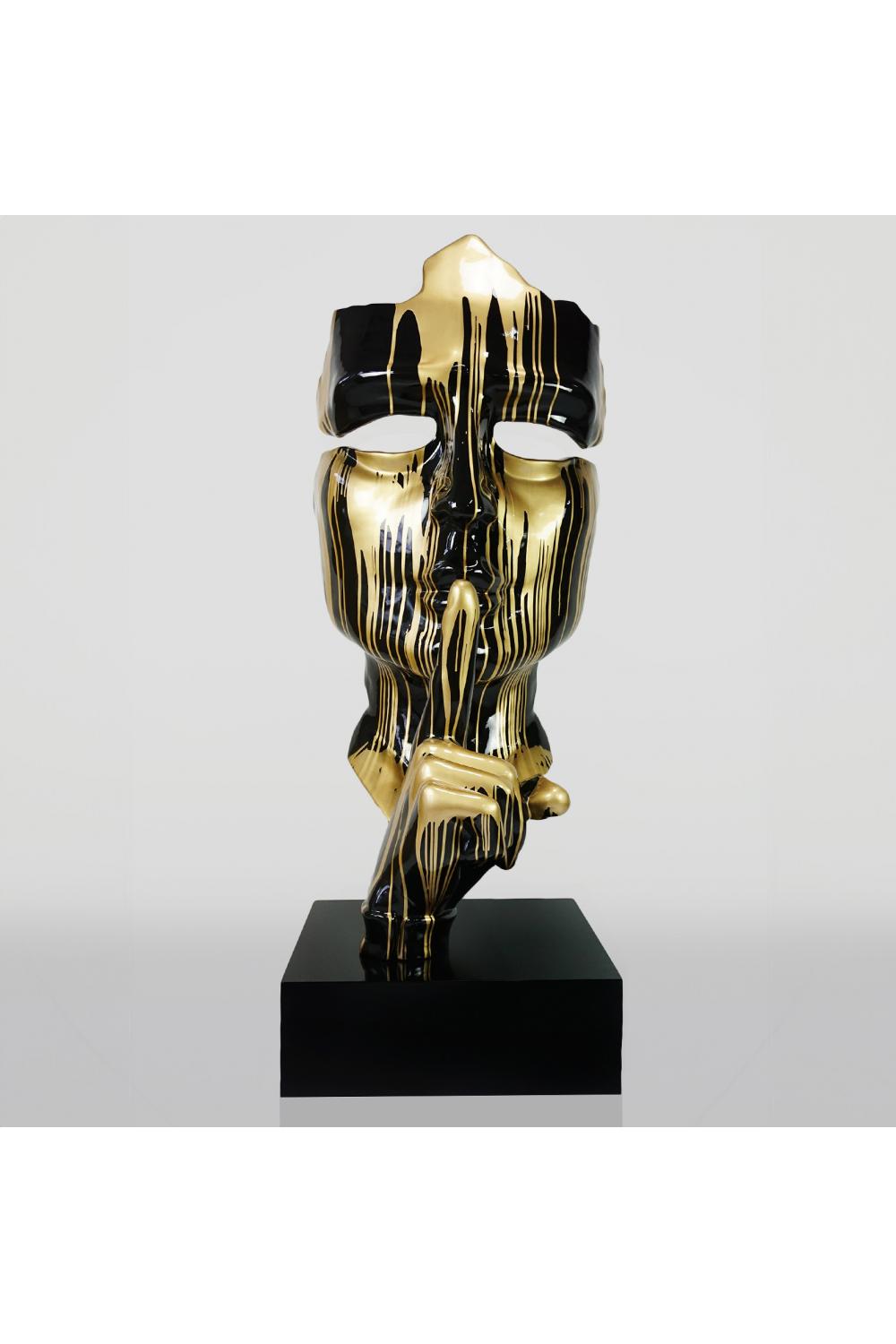 This imposing art piece blends theatrical expression with refined luxury, making it an exceptional addition to grand interiors and architectural spaces. Its rich black and metallic gold palette captures the eye instantly, while the iconic silence gesture evokes intrigue and emotional depth. The flowing contours and smooth sculpted form elevate it into a striking work of contemporary art.