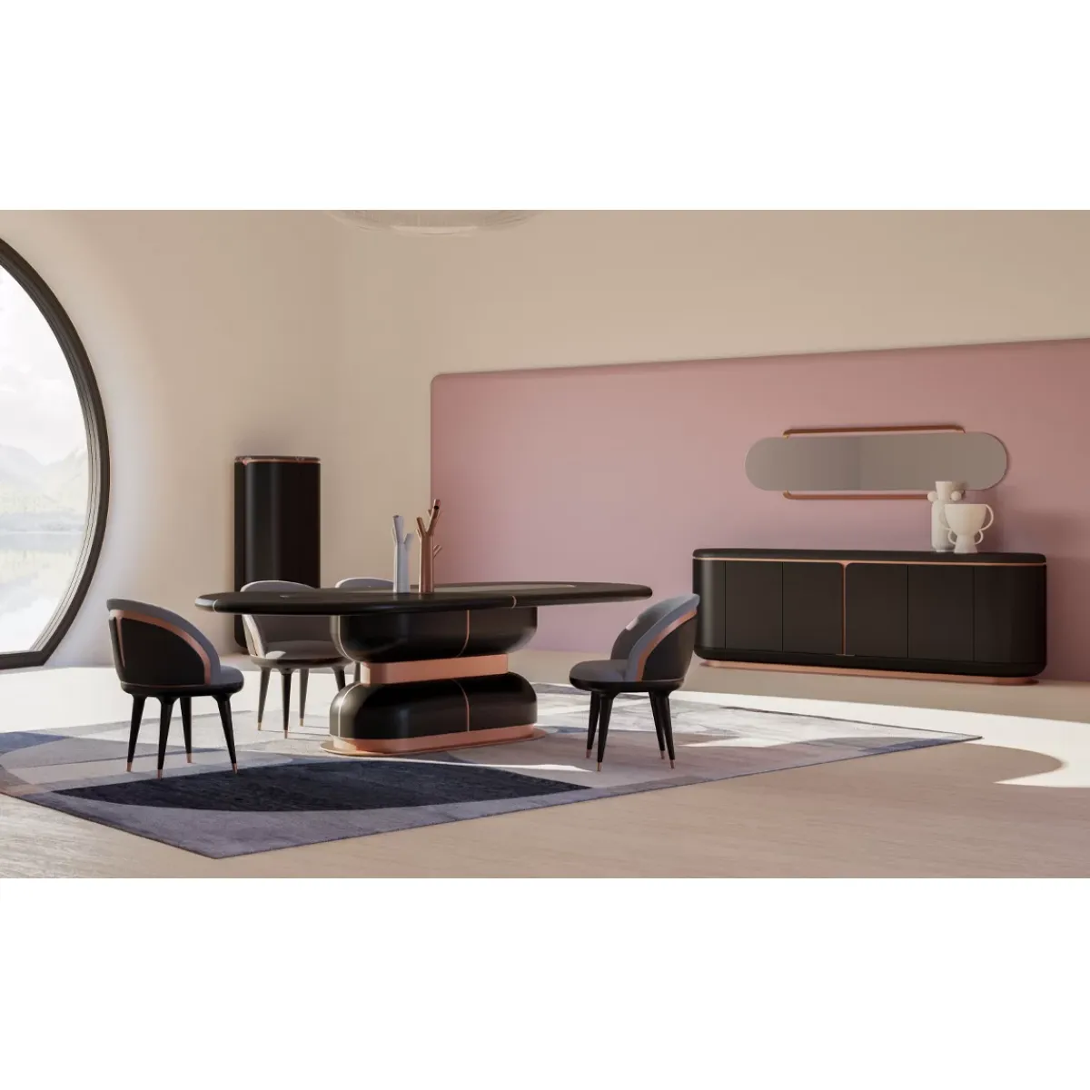 For a complete dining experience, explore our full luxury dining chair collection. Pair this chair effortlessly with the Black Oval Faux Leather Top Luxury Dining Table with Copper Finish Base to create a perfectly coordinated modern luxury dining setting.
