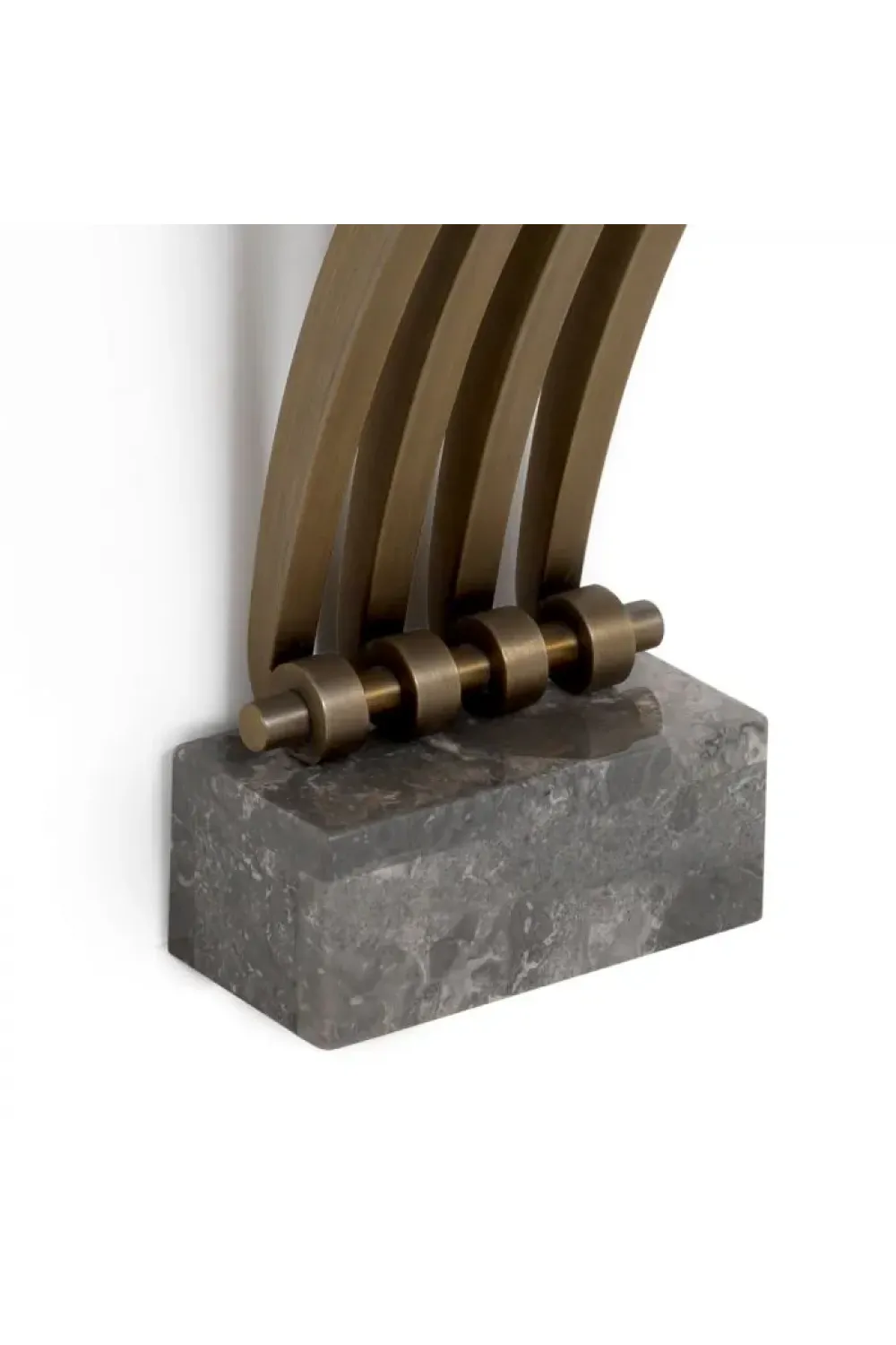 This luxury black marble semi-circular console table top with Brushed brass finish legs is a refined statement piece inspired by classical European design. The semi-circular tabletop is crafted from natural black marble, revealing unique veining and subtle variations that ensure every piece is one of a kind. Supported by four elegantly curved brushed brass legs, the design achieves a harmonious balance between sculptural form and material richness. The curled feet rest on a solid black granite base, adding both visual weight and refined stability.