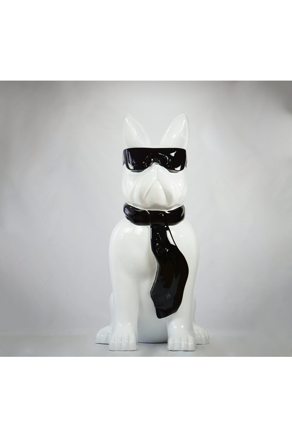 A fusion of style, personality, and artistic craftsmanship, this life-size bulldog sculpture is designed to become the focal point of any luxurious interior. The black and white palette enhances its modern character, while the bold sunglasses and neatly sculpted tie add a fashionable, expressive touch. Its 120 cm height ensures an impressive presence that enriches both residential and commercial settings.