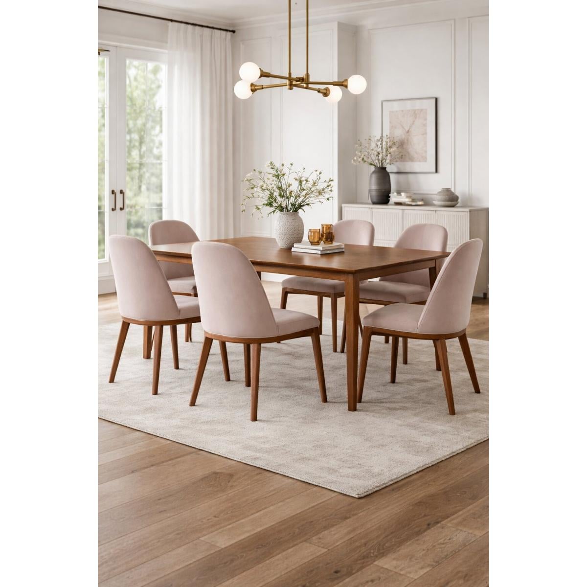Luxury Blush Velvet Upholstered Dining Chair with Elegant Wooden Legs offers the perfect blend of modern elegance and timeless comfort. Upholstered in rich blush velvet, this chair combines both style and function with its soft, luxurious fabric. The sleek, ergonomic backrest provides exceptional support, while the gracefully tapered wooden legs add a contemporary touch to the overall design. The soft blush upholstery exudes warmth, making it a perfect addition to various dining room styles, from modern minimalist to more traditional settings. Its clean lines and refined construction make this luxury upholstered dining chair an ideal choice for any upscale dining space.