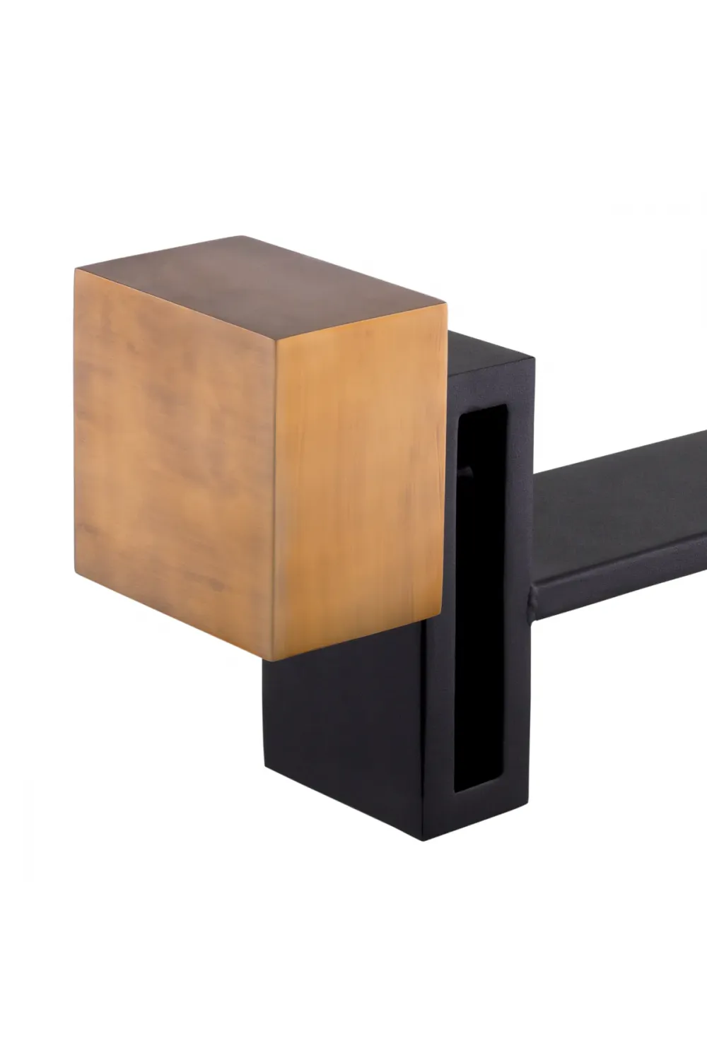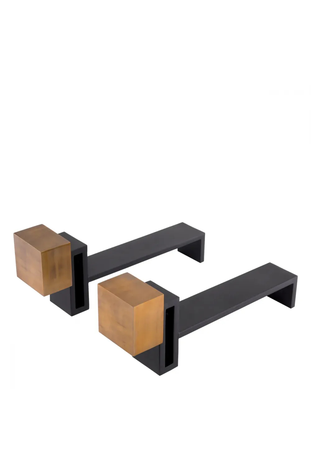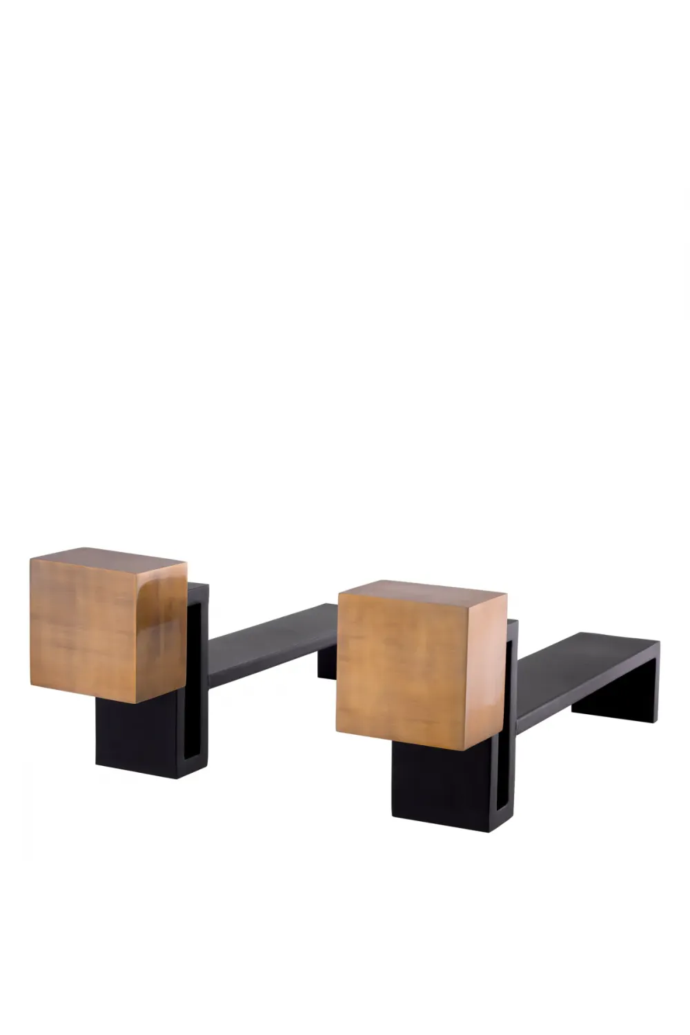 Its bold silhouette is elevated by two sculpted vintage brass blocks at the front, adding both stability and a touch of refined artistry. These brass accents prevent logs from rolling outward while introducing a warm, sophisticated contrast against the deep black structure. This harmonious blend of strength and luxury makes the piece suitable for penthouses, heritage villas, chalet-style interiors, and boutique hotel lounges.